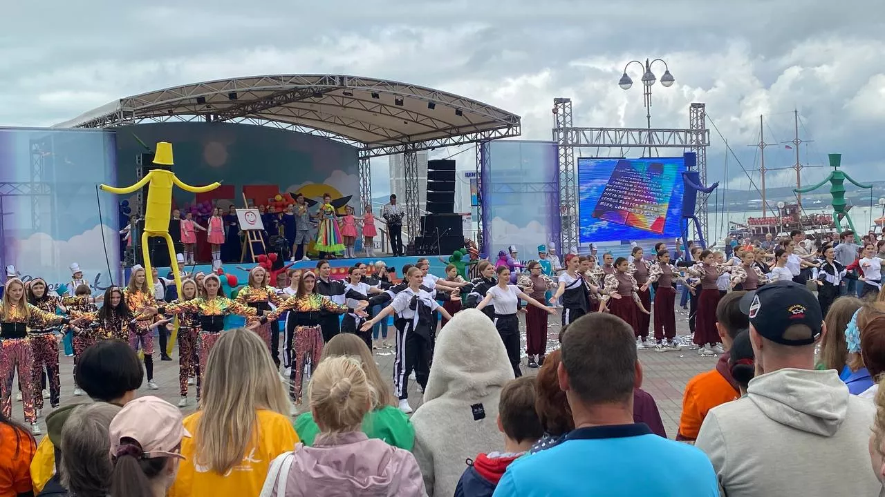 У площадки «Золотая рыбка» развернулся целый детский городок. Дети из центров дополнительного образования представили свои картины, а воспитанники детских садов и школ курорта устроили соревнования по рисункам на асфальте и изготовлению поделок.