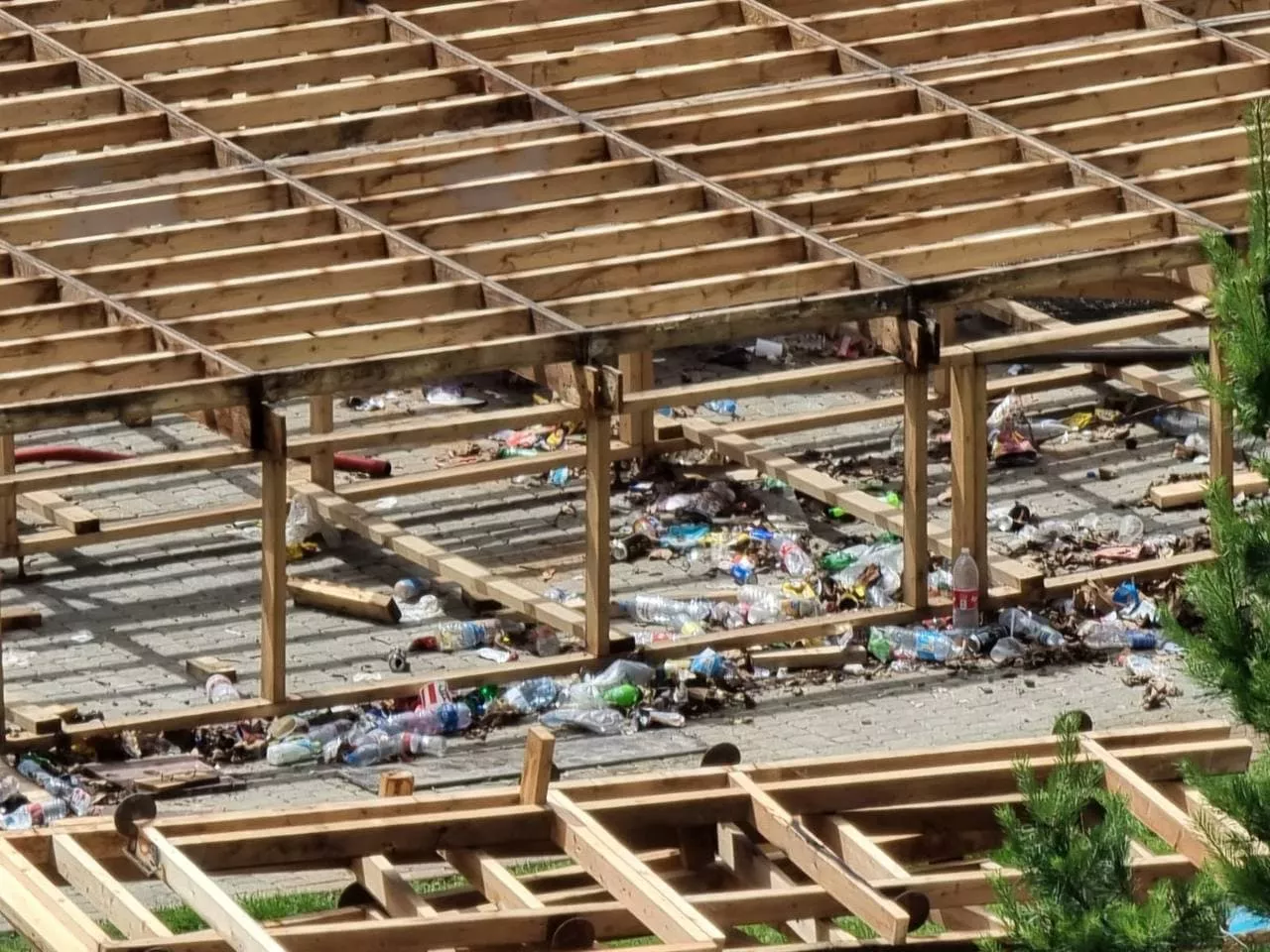 На территории, где раньше был скейт-парк, осталась пустая площадка, покрытая тротуарной плиткой. Местные жители сказали, что ее разобрали на прошлых выходных буквально за два дня.