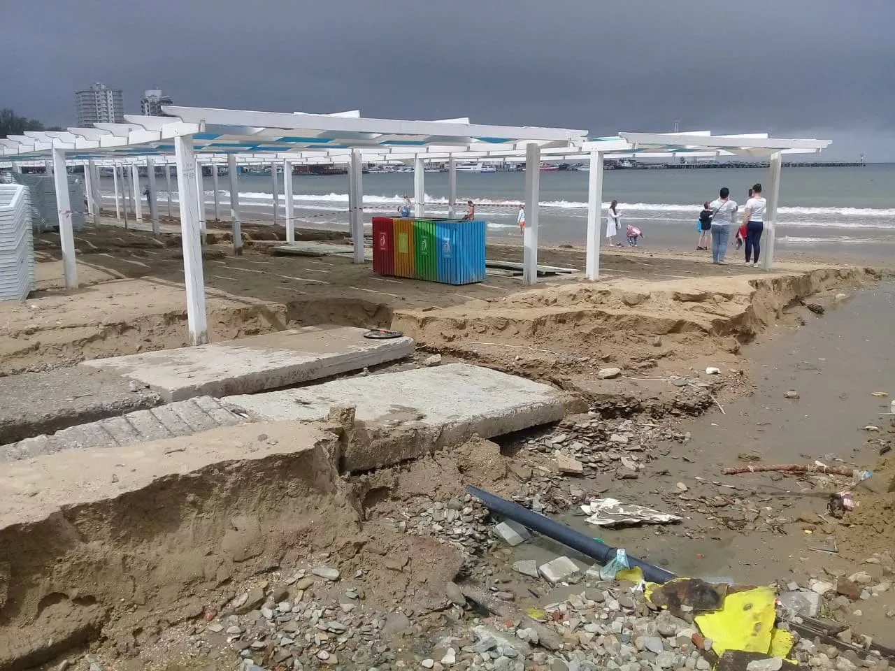 Ночью 17 июня в Анапе прошел сильный ливень, который подтопил дворы, многоэтажку и смыл Центральный пляж