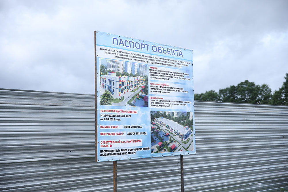 «Начали строить самый большой в Краснодаре детский сад, рассчитанный на 350 мест. Поэтому строим его в самом большом округе — Прикубанском [...] Здесь будет целый социальный кластер — рядом, буквально за забором, будет большая школа на 1550 мест и еще два детсада, по 350 мест каждый. К их строительству планируем приступить уже в следующем году», — написал в своем телеграм-канале глава Краснодара Евгений Первышов.