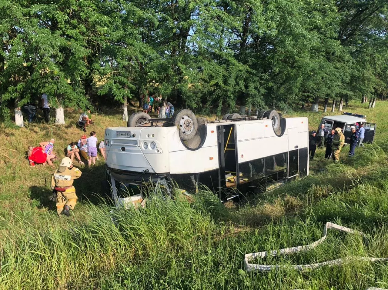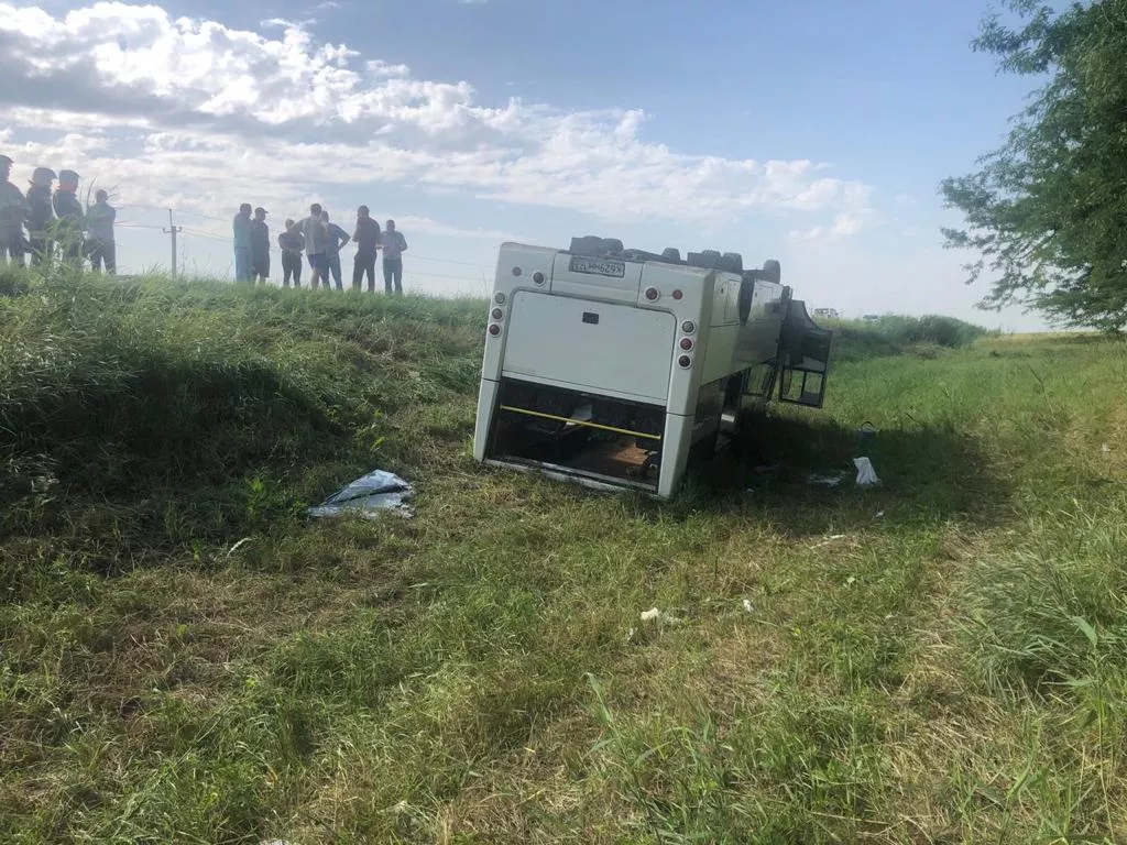 Утром 19 июня в Славянском районе перевернулся рейсовый автобус с 32 пассажирами