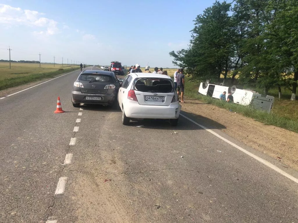 На Кубани рейсовый автобус с пассажирами перевернулся на крышу. Есть пострадавшие