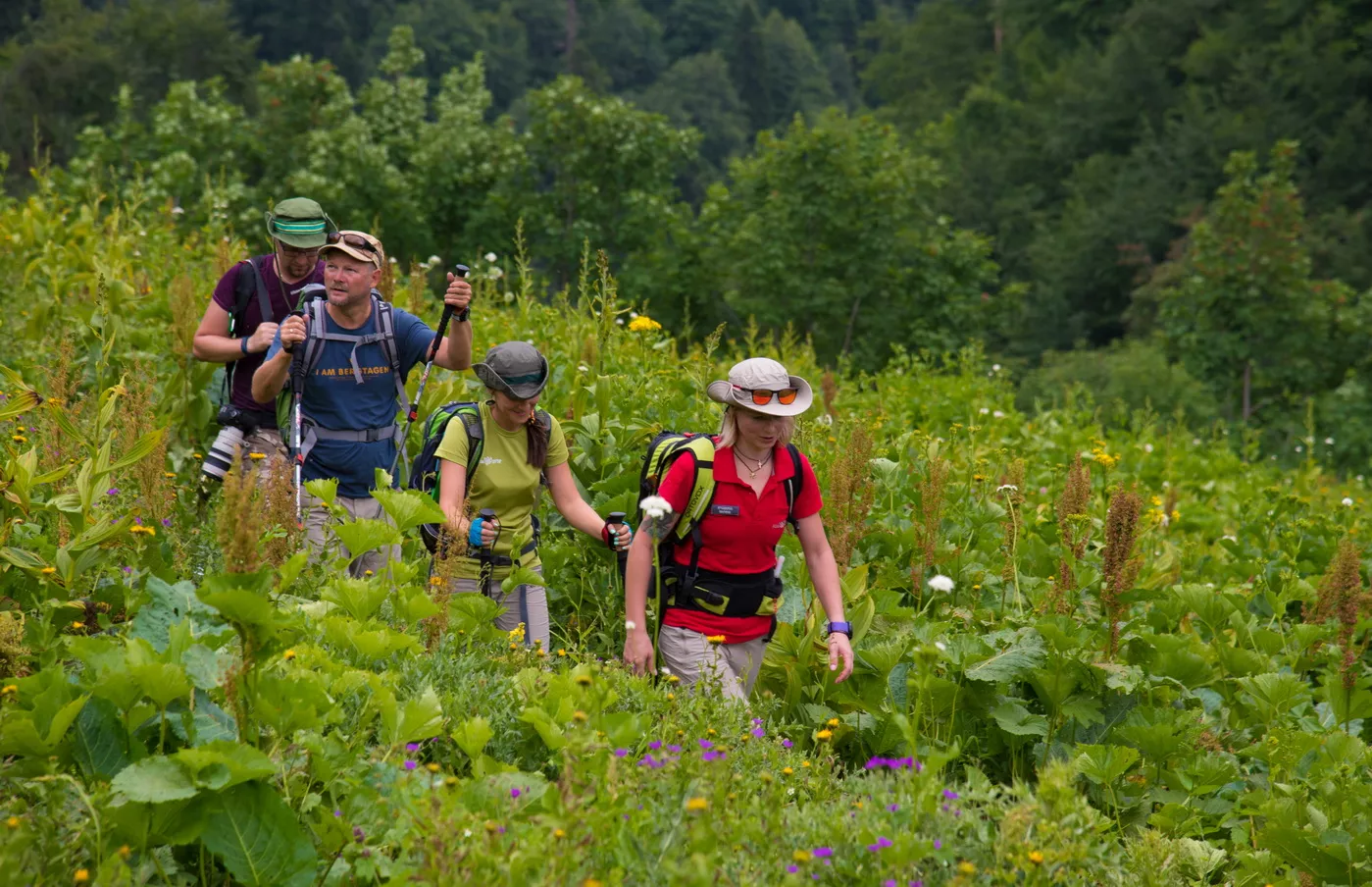 - 1800 метров — криволесье, субальпийские луга и густые леса из пихт, рябины кавказской и клена высокогорного;