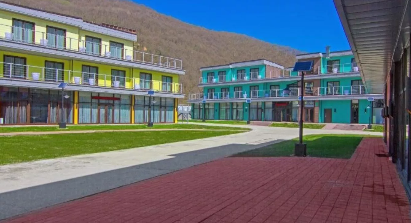 Курортный комплекс на 39 тыс. кв. метров включает в себя пять трехэтажных спальных корпусов, ресторан на 100 посадочных мест, конференц-зал на 60 мест, спорт-бар, бильярдную и игровую. В настоящий момент вся мебель и оборудование вывезены, а территория закрыта и находится под охраной.