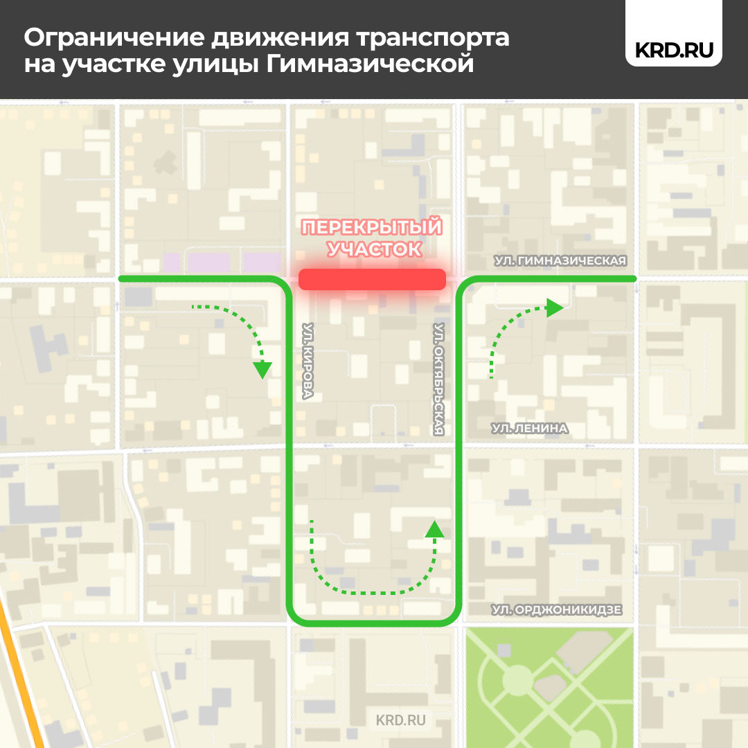 В Краснодаре на участке улицы Гимназической нельзя будет проехать с 17 по 27 июля