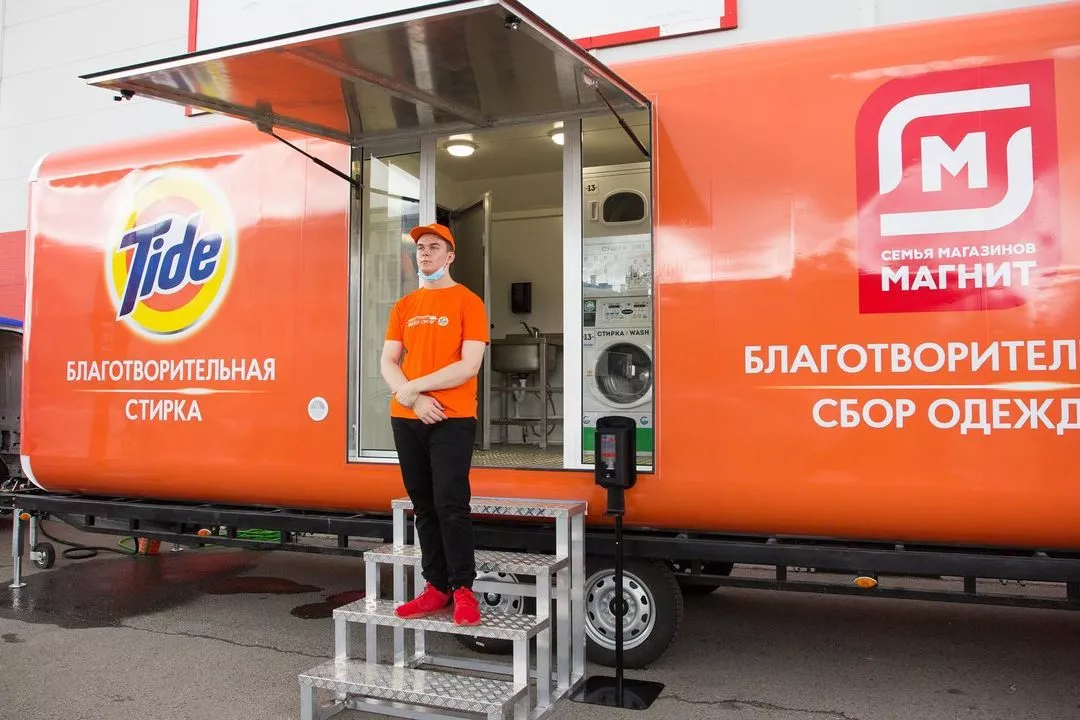 Напомним, в конце июня розничная сеть «Магнит» и бренд Tide объявили о запуске совместной акции по сбору и стирке одежды для малообеспеченных семей с детьми. Любой может сдать ненужные вещи на благотворительность до 17 августа и постирать свои вещи в мобильной прачечной.