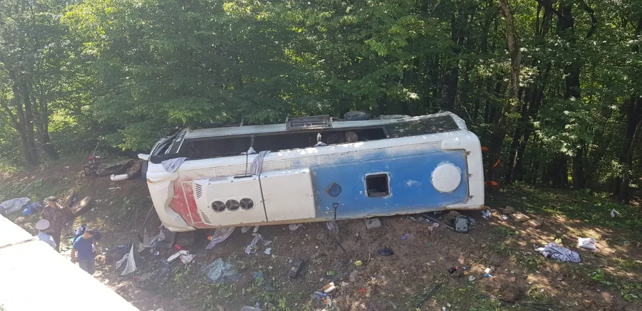 В Апшеронском районе утром 24 июля опрокинулся экскурсионный автобус с туристами. Есть погибшие и пострадавшие