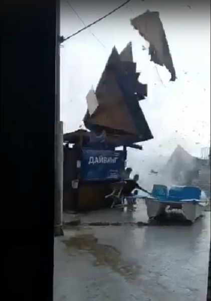 На других кадрах из Широкой балки смерч прошел мимо туристического корабля и вышел к пирсу, подняв в воздух деревянные навесы. Подборку видео опубликовал телеграм-канал «ЧП Краснодар».