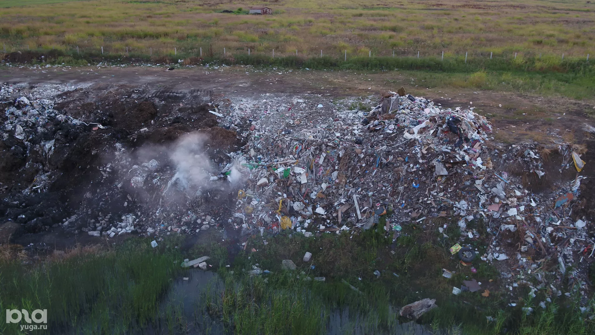 Юга.ру полетали над крупной свалкой в полях Краснодара и обнаружили, что мусор не вывозят, а поджигают. Кроме того, мы нашли рядом свалку поменьше