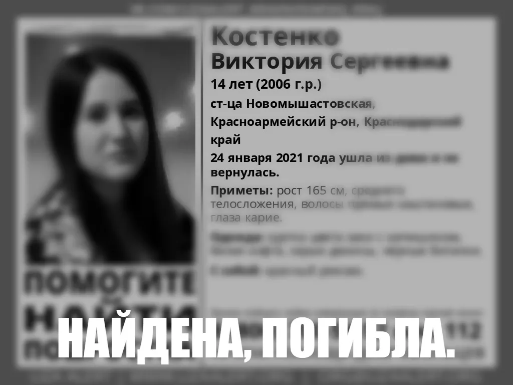 Напомним, 14-летняя Виктория Костенко пропала 24 января 2021 года. Она ушла из дома в станице Новомышастовской и не вернулась. По факту исчезновения межрайонный отдел СКР по краю начал доследственную проверку.