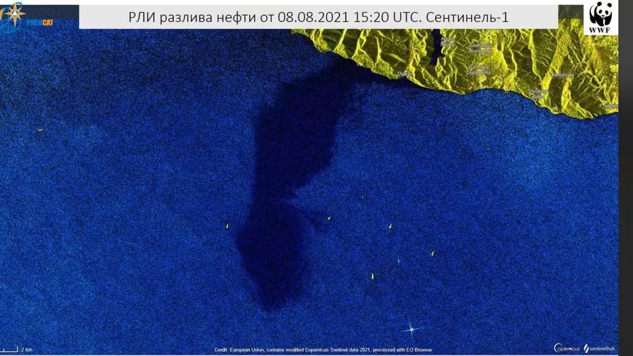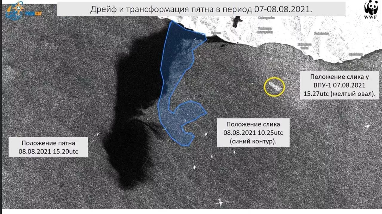 Пресс-секретарь WWF Дарья Буянова сообщила 11 августа порталу Юга.ру, что еще 7 августа система мониторинга экологический аварий фонда показала пятно размером 250 тыс. м² (0,25 км²). 8 августа площадь пятна увеличилась до 94 км².