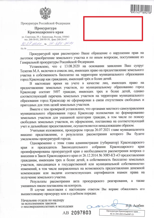 Портал Юга.ру узнал, что Генеральная прокуратура отреагировала на жалобы многодетных из Краснодара на проблемы с выдачей земельных участков