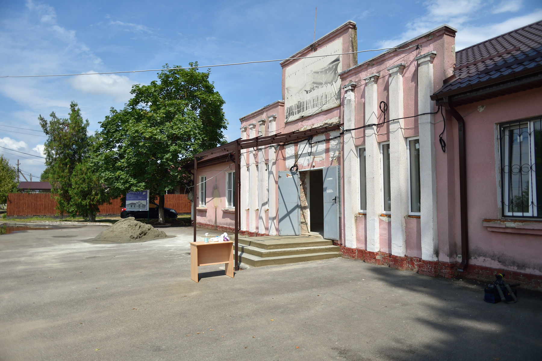 Сейчас идут работы по замене дверей и окон, а также внутренняя и внешняя отделка здания. В дальнейшем строители проведут монтаж систем отопления, электропроводки, водоотведения, водоснабжения и видеонаблюдения. Ремонт планируется закончить к сентябрю этого года.