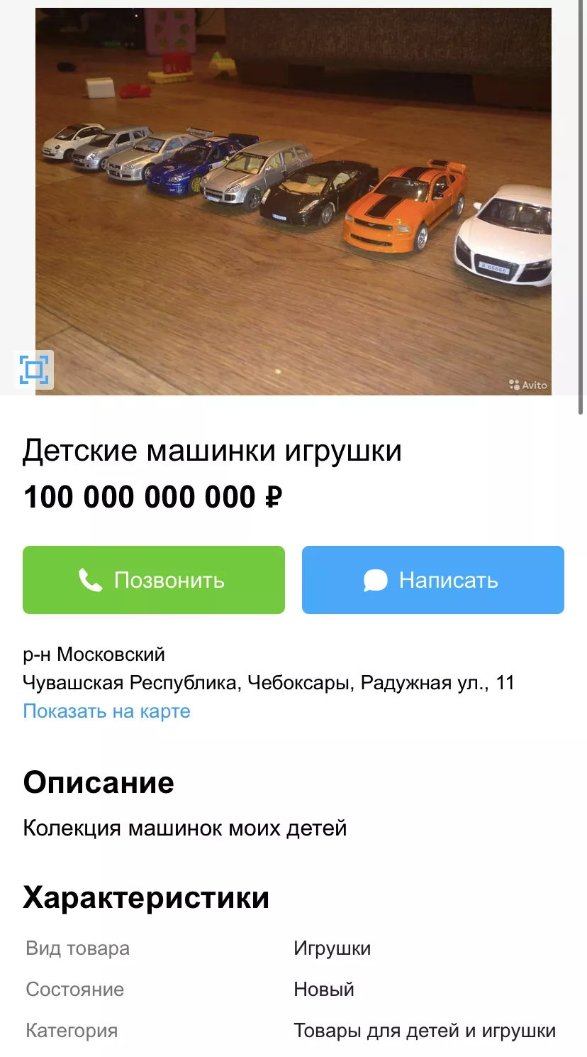 Пользователи твиттера нашли на «Авито» детские игрушки стоимостью несколько миллионов