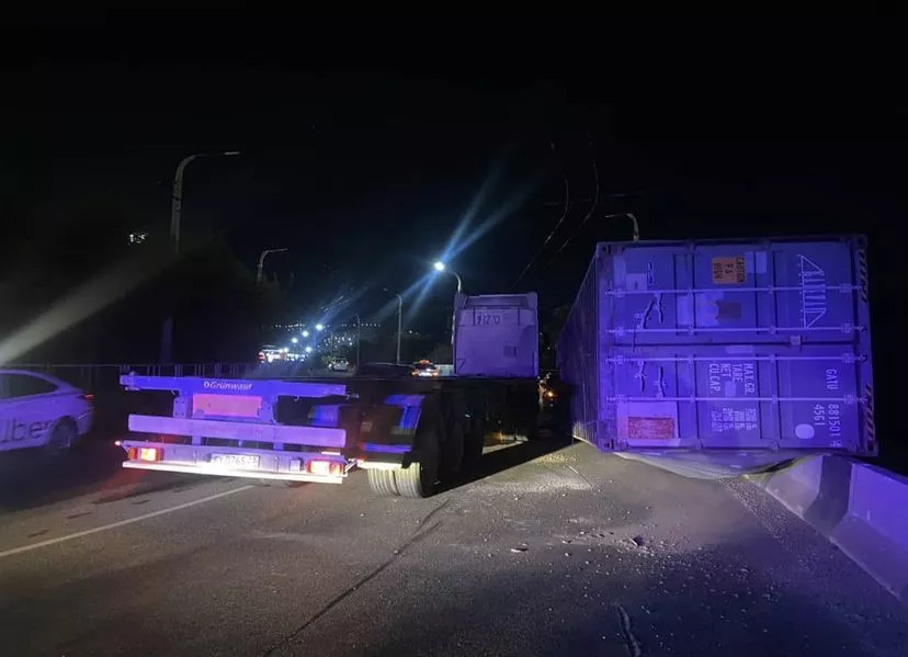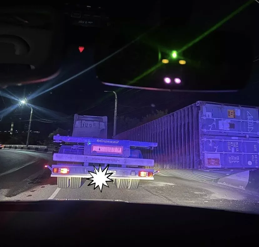 В Новороссийске ночью 10 сентября на дороге перевернулся многотонный контейнер