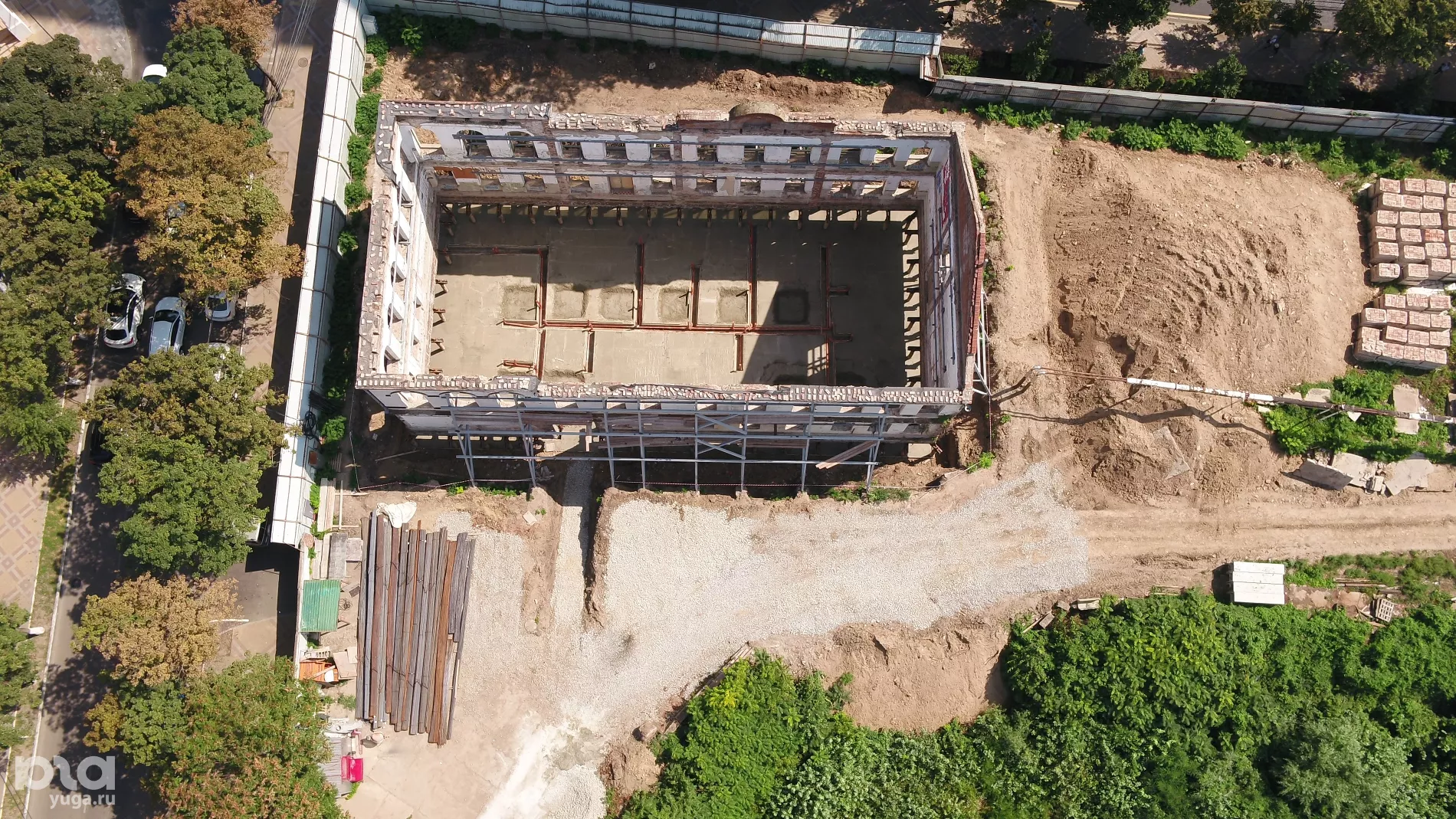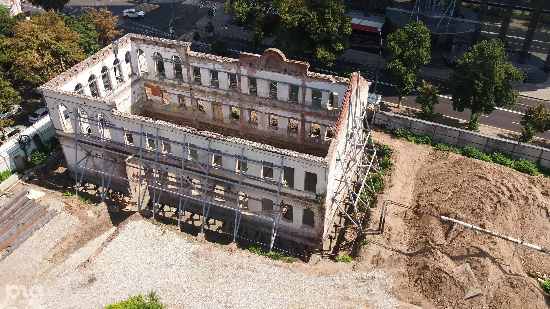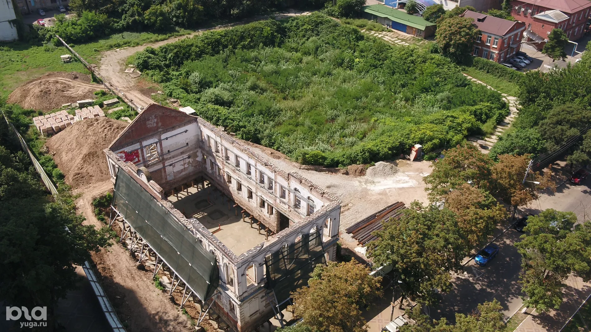 Портал Юга.ру снял с высоты птичьего полета ремонт здания бывшего Женского училища на улице Красной, 101, где хотят сделать кафе