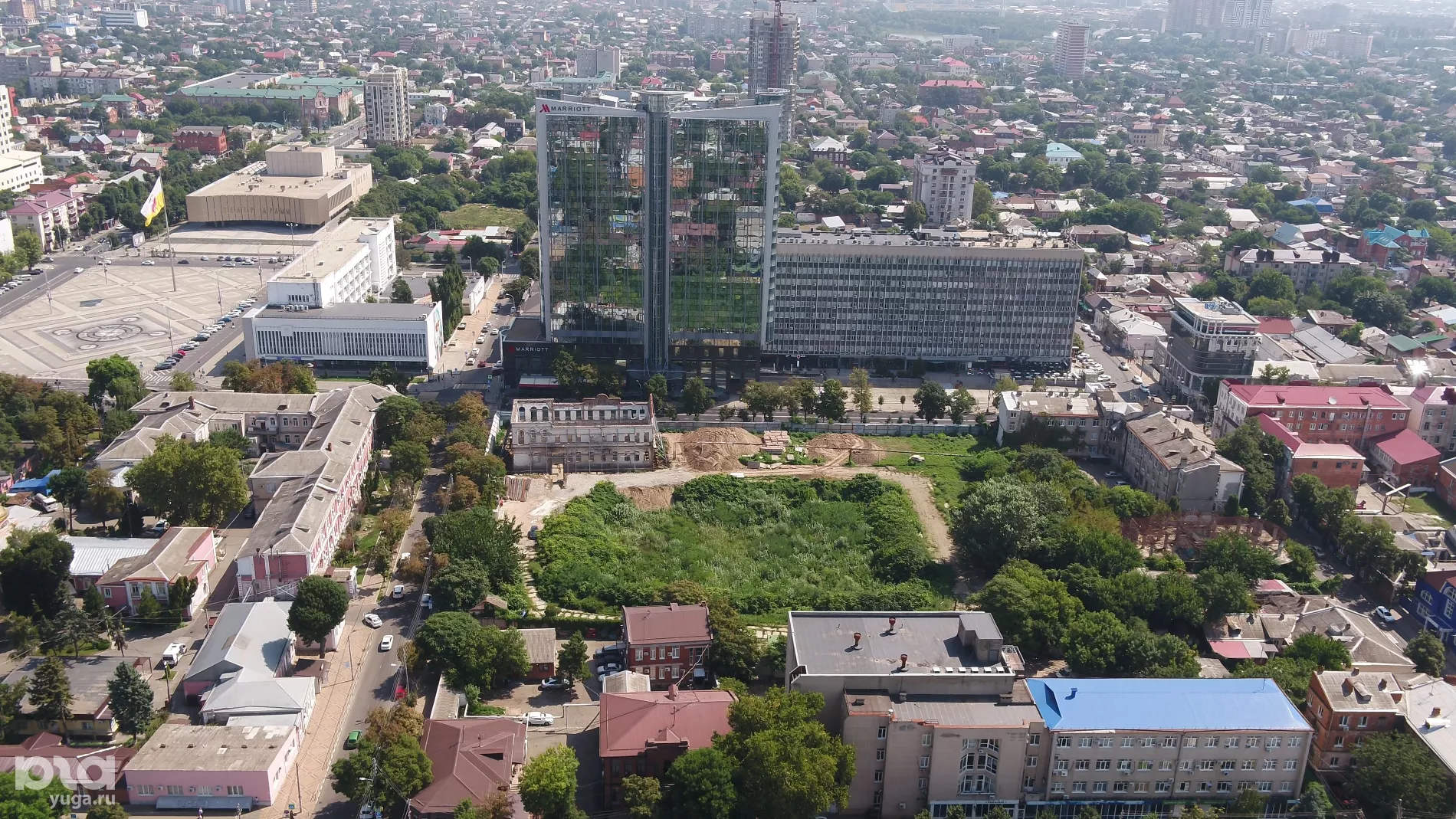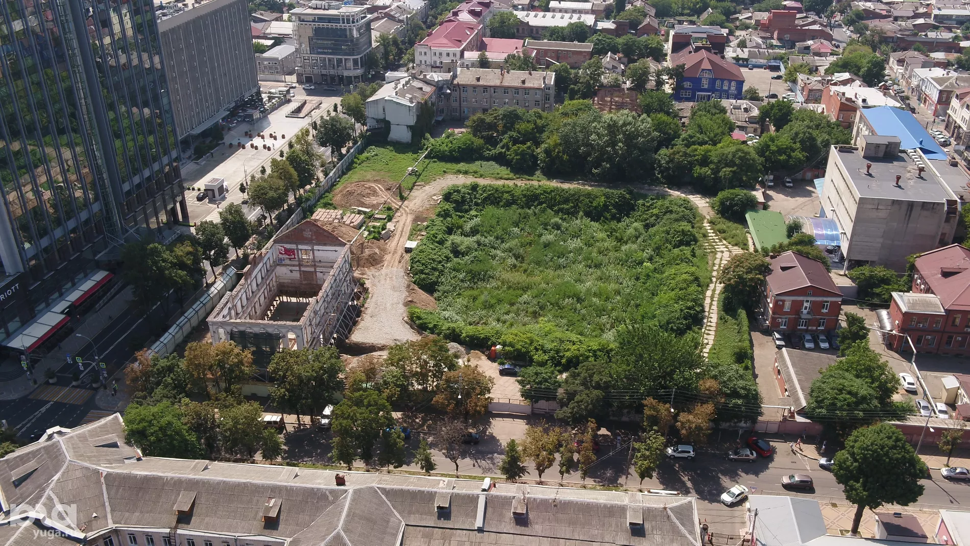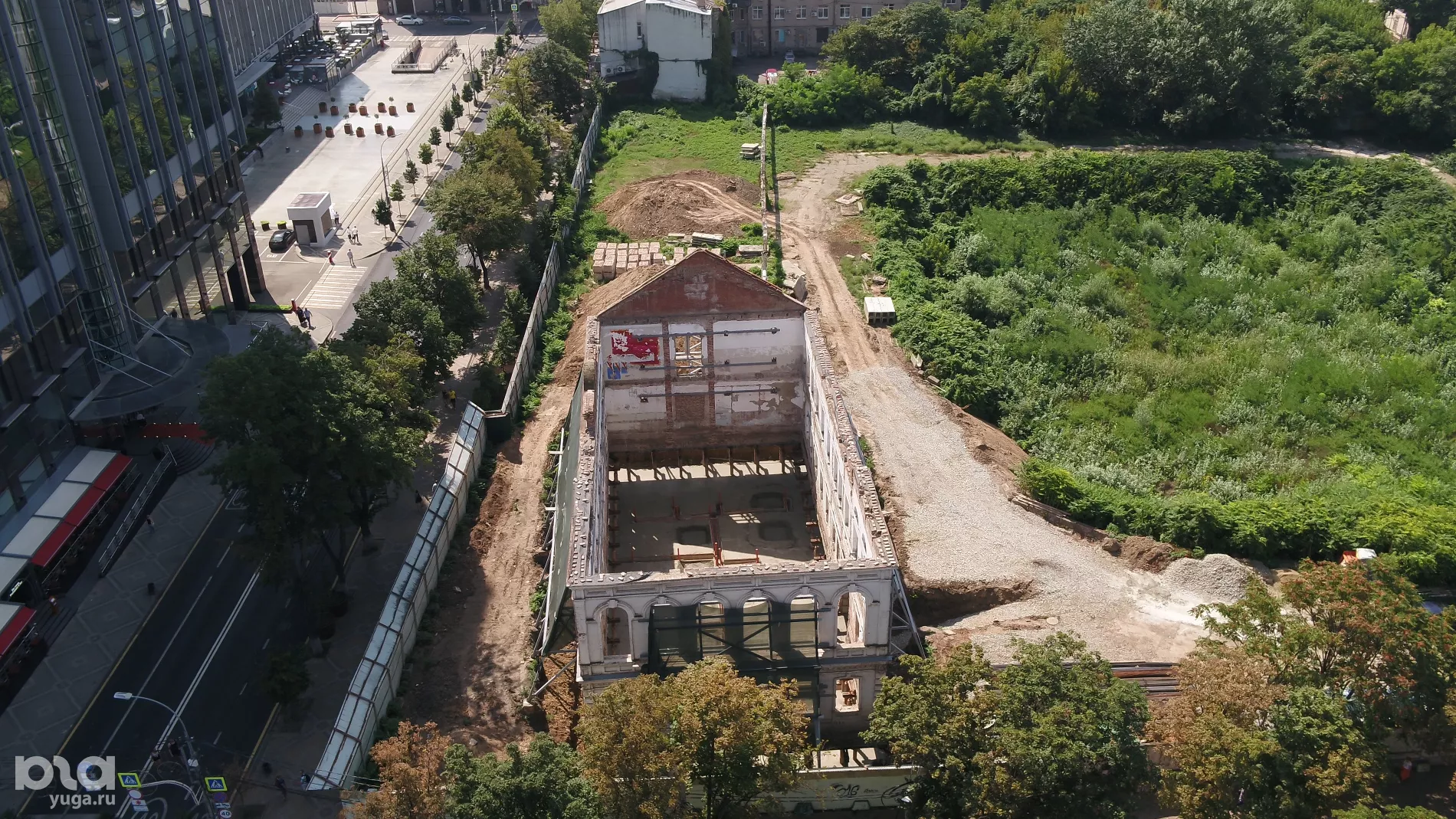 Портал Юга.ру снял с высоты птичьего полета ремонт здания бывшего Женского училища на улице Красной, 101, где хотят сделать кафе