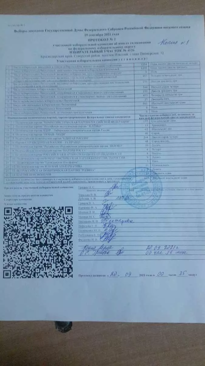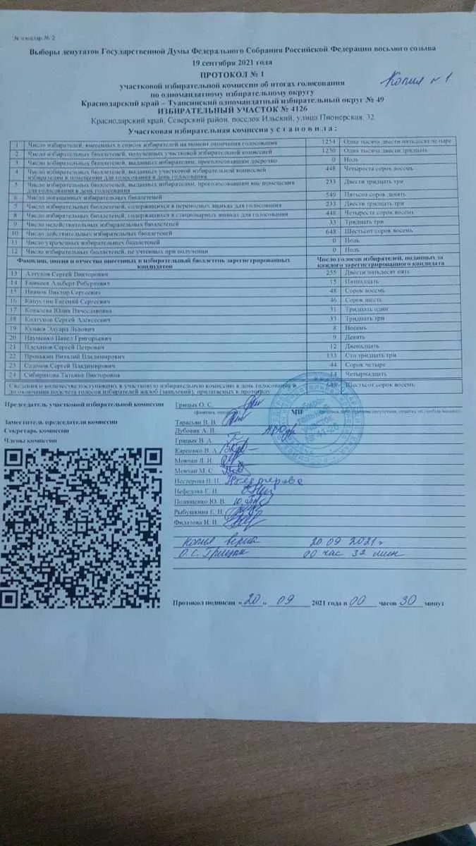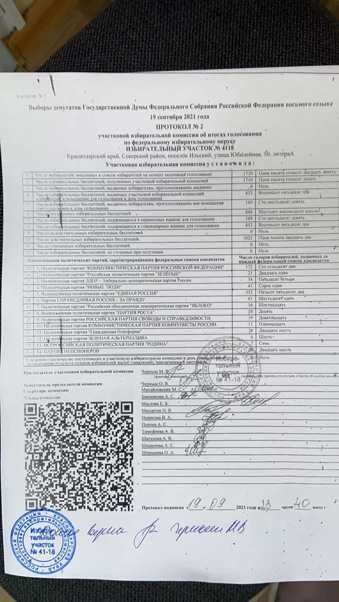 Независимые наблюдатели сверили протоколы с двух участков в поселке Ильском (№ 41-18 и 41-26) с данными в системе ГАС «Выборы» и заметили, что голоса не сходятся. Об этом они сообщили на «Карту нарушений» [проект создан движением в защиту прав избирателей «Голос», которое признано иноагентом в России].