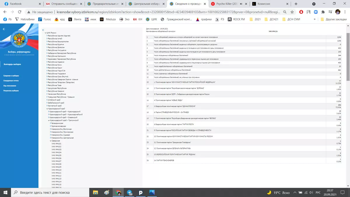 Такая же ситуация произошла при подсчете голосов за партии. На участке № 41-18 у «Единой России» было 552 голоса, а в систему внесли 702.