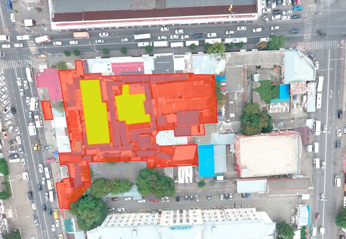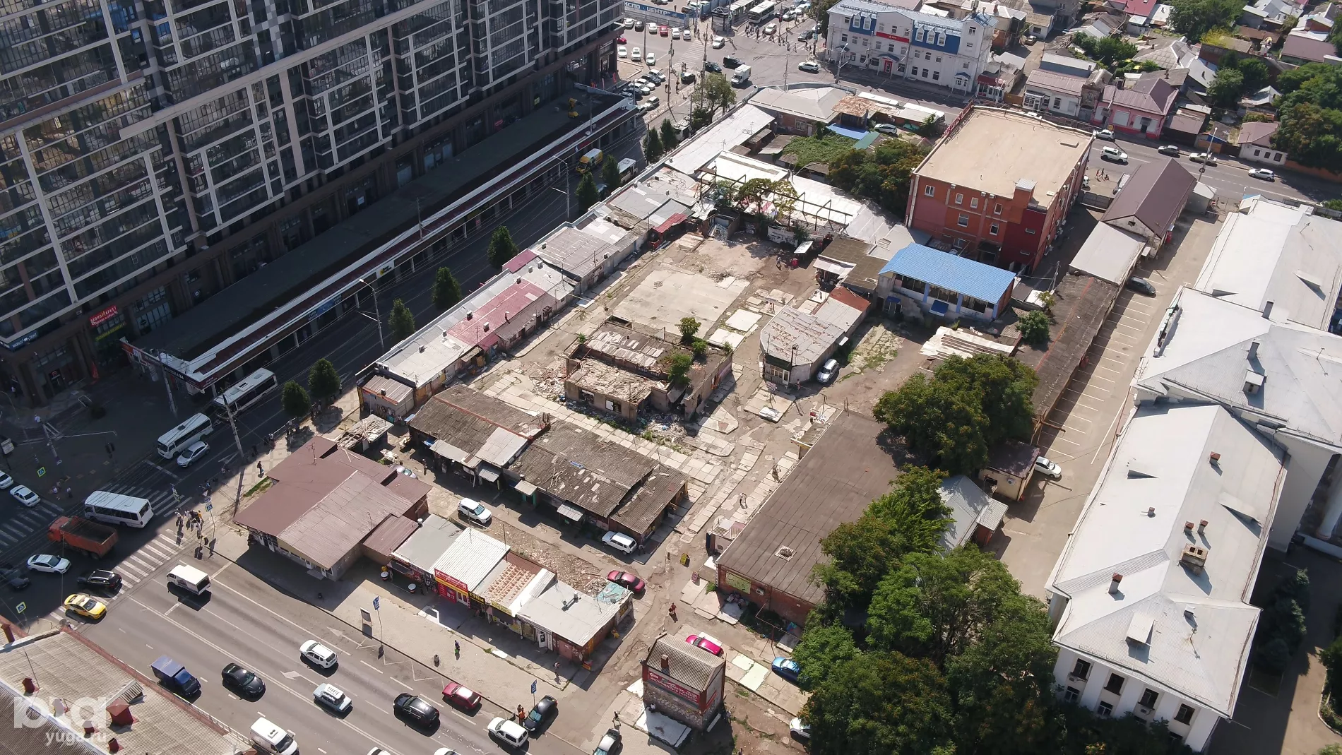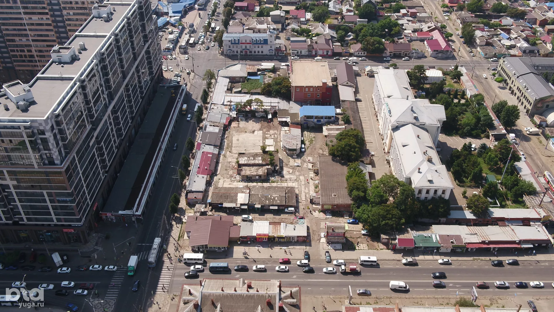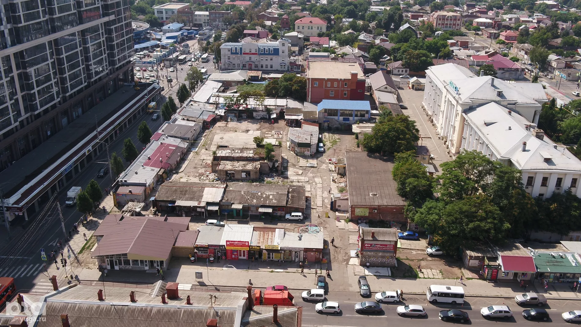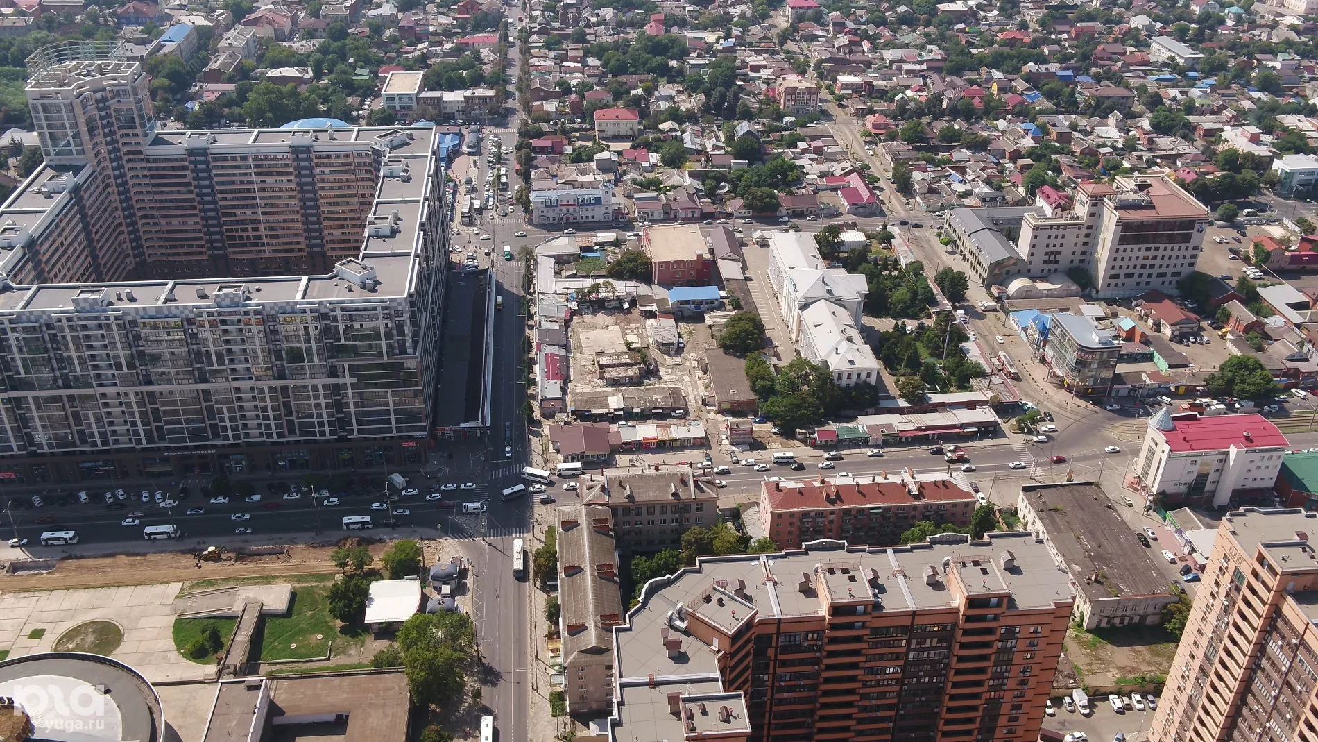 Юга.ру посмотрели, как выглядят с воздуха разрушенные «скобяные ряды» в центре Краснодара, и спросили в мэрии, появится ли там транспортно-пересадочный узел