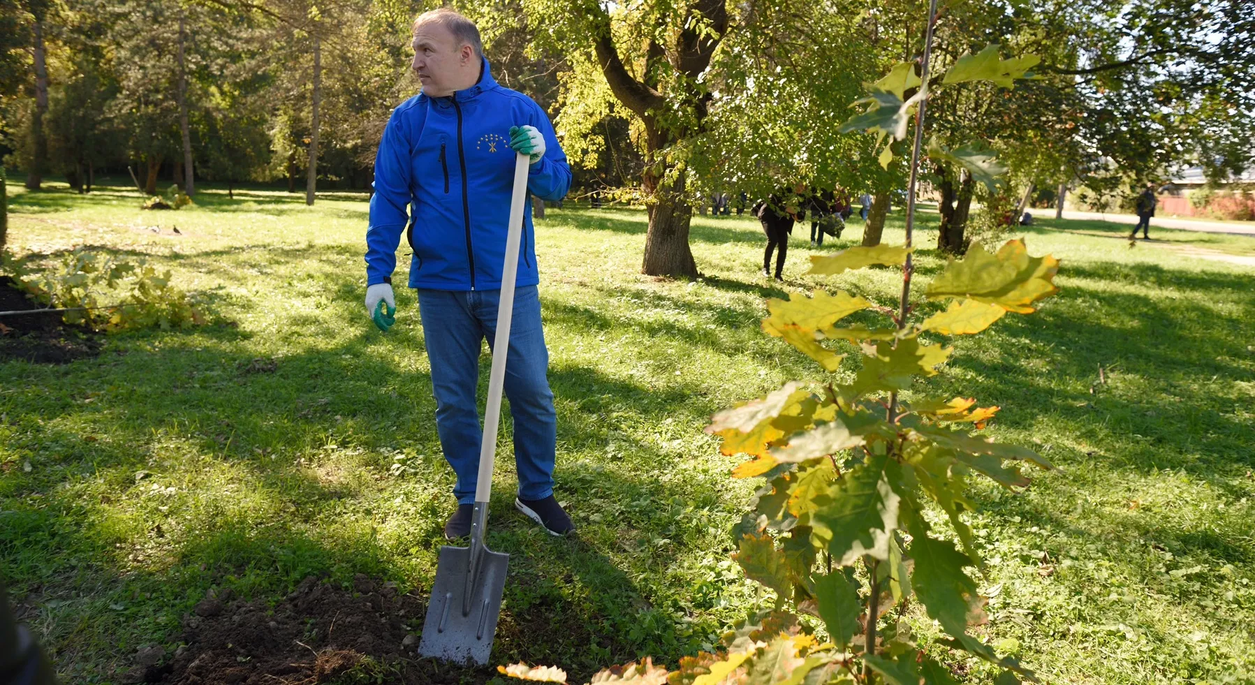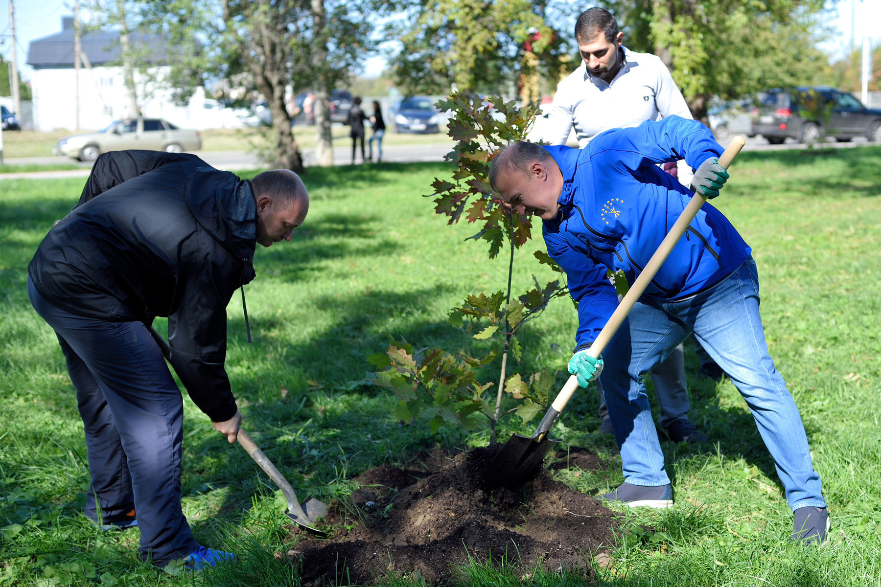 Глава Адыгеи Мурат Кумпилов посетил места уборки и высадил несколько саженцев дуба на аллее возле лестницы на «Мэздах».