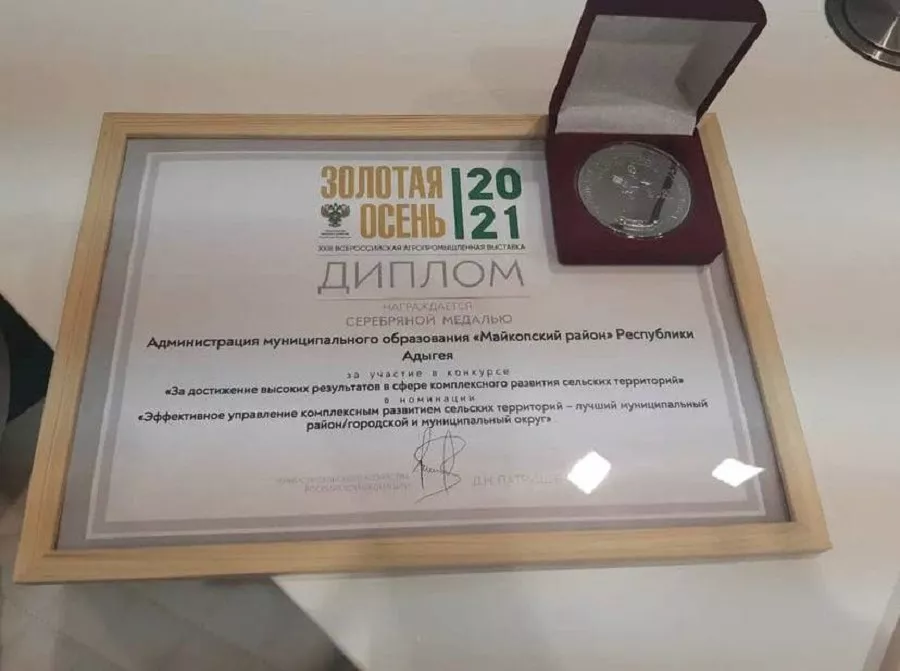 Майкопский район выиграл серебряную медаль и диплом в категории «Эффективное управление комплексным развитием сельских территорий — лучший муниципальный район/городской и муниципальный округ».