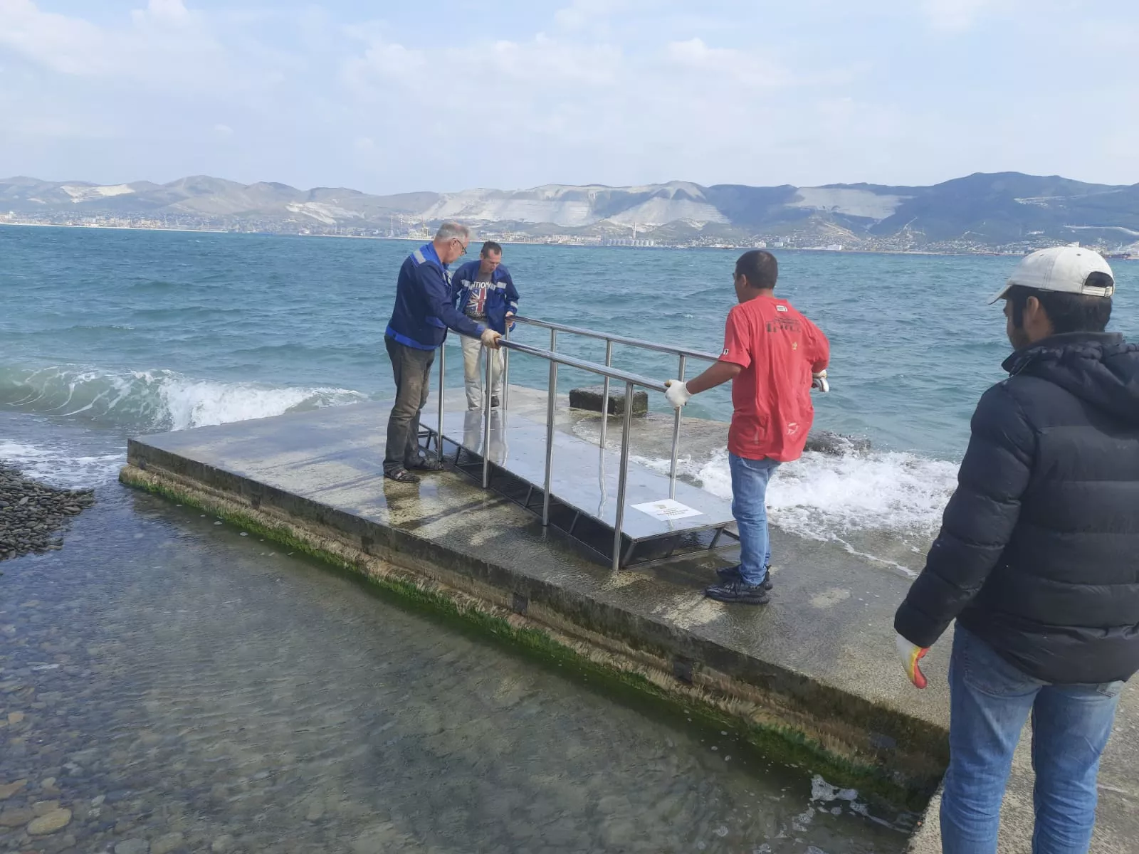 11 октября при помощи благотворительного фонда «Сердца поколений» установили пандус из нержавейки. Теперь по нему можно спуститься на специальной плавательной коляске в море, сообщили в пресс-службе администрации Новороссийска.