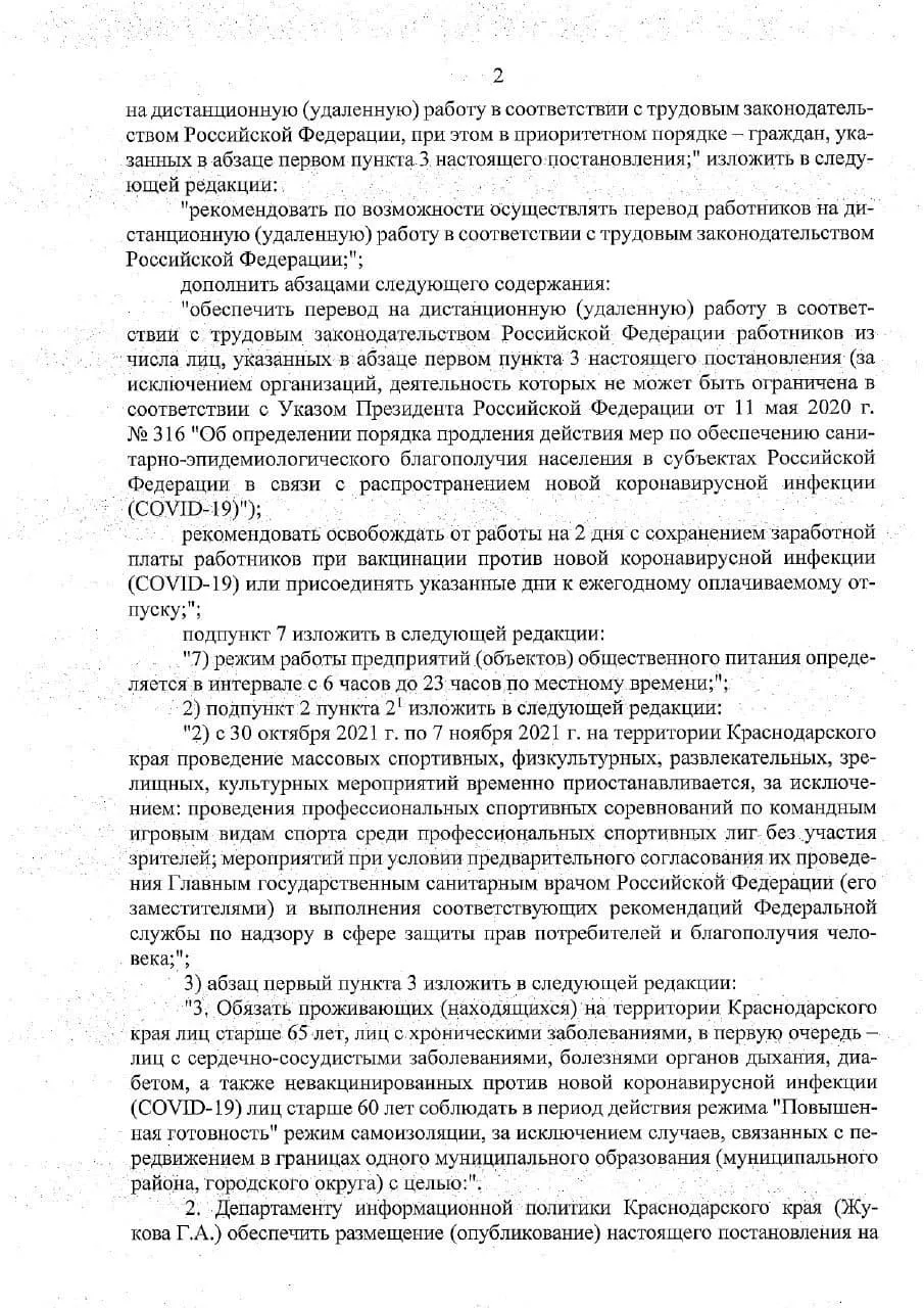 29 октября губернатор Кубани Вениамин Кондратьев установил новый режим работы общепита и постановил перевести сотрудников на удаленку