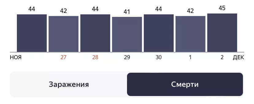 Как сообщили в краевом министерстве здравоохранения, за сутки скончались 45 человек. В тяжелом состоянии на ИВЛ находятся 110 жителей, на ЭКМО — шестеро.