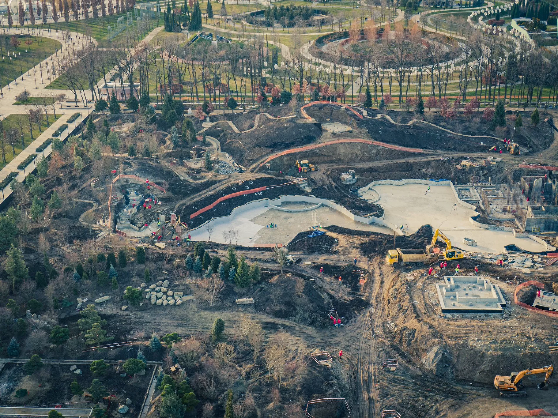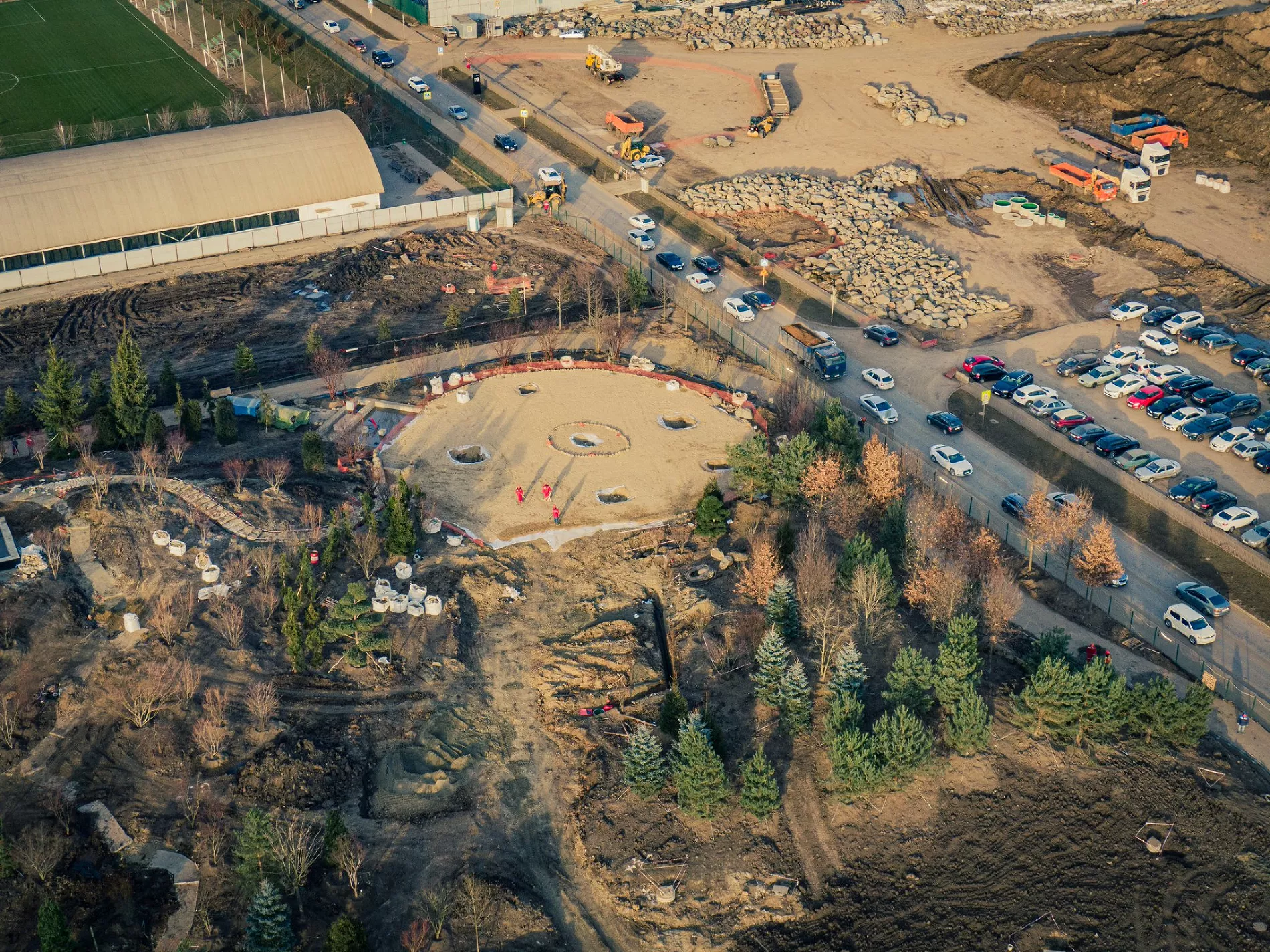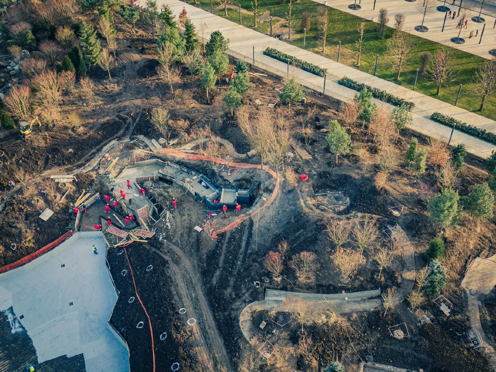 Фотограф Евгений Таранжин опубликовал в своем твиттере фото стройки новой очереди парка. Работы он снял с высоты птичьего полета.