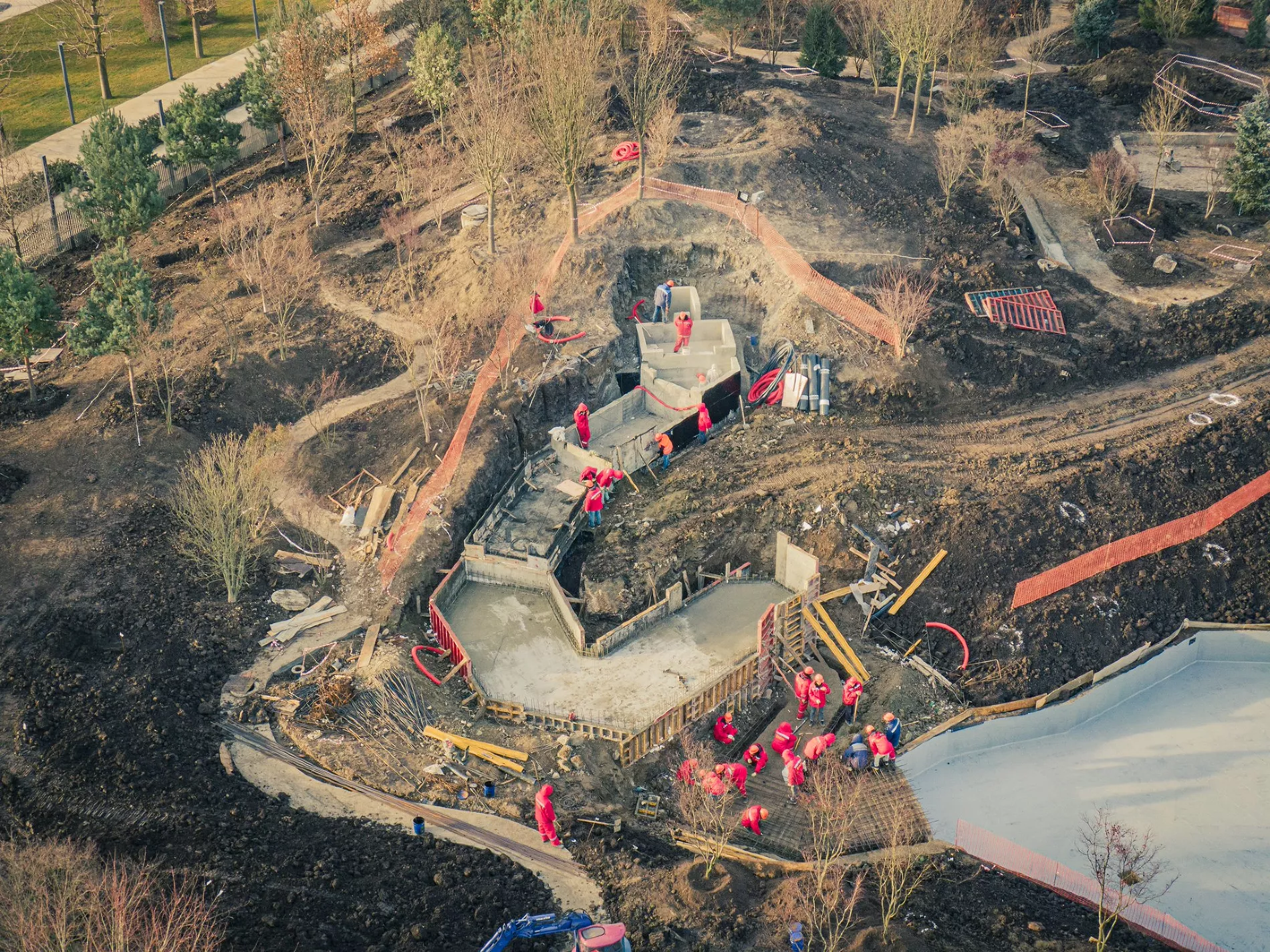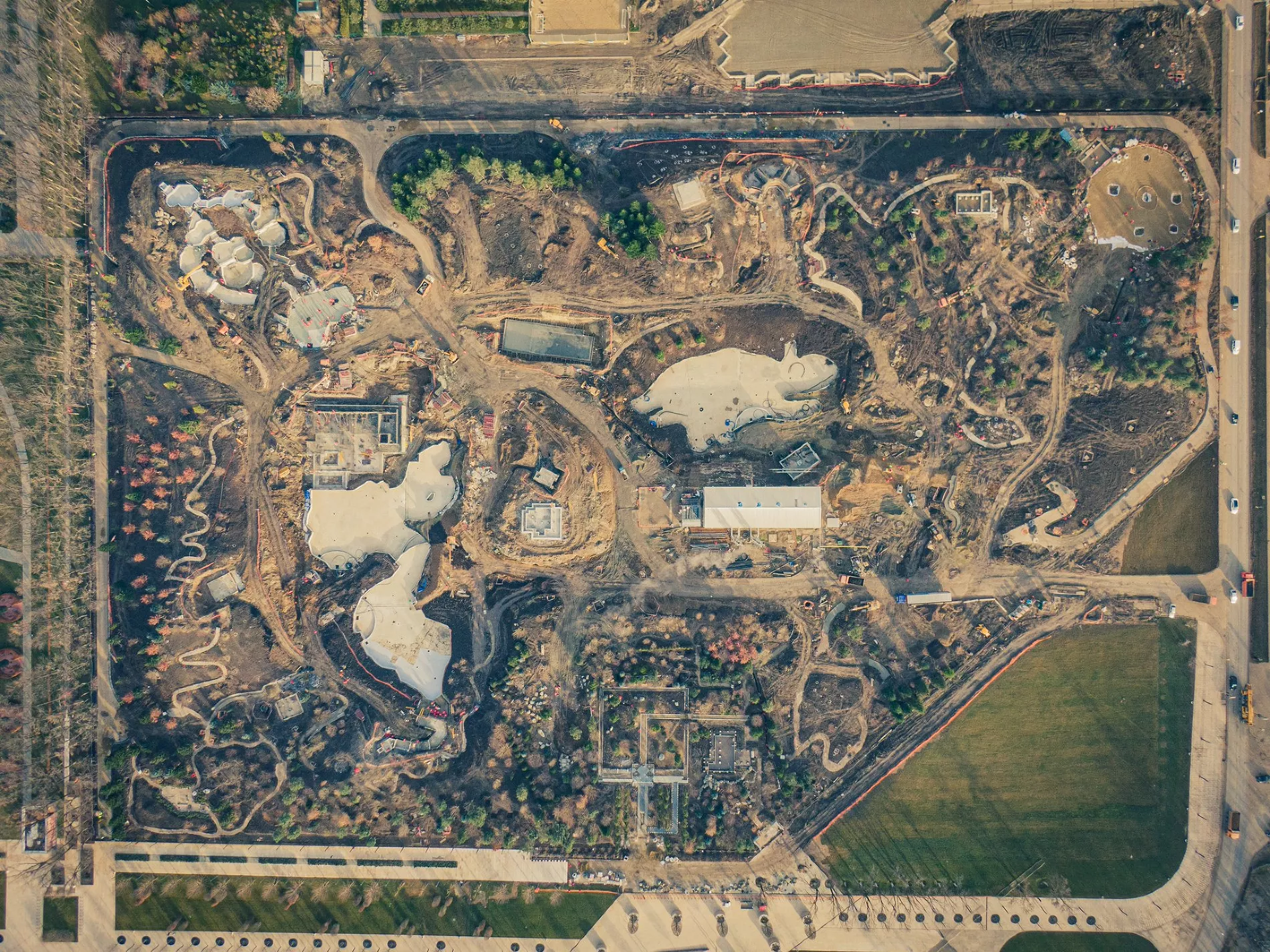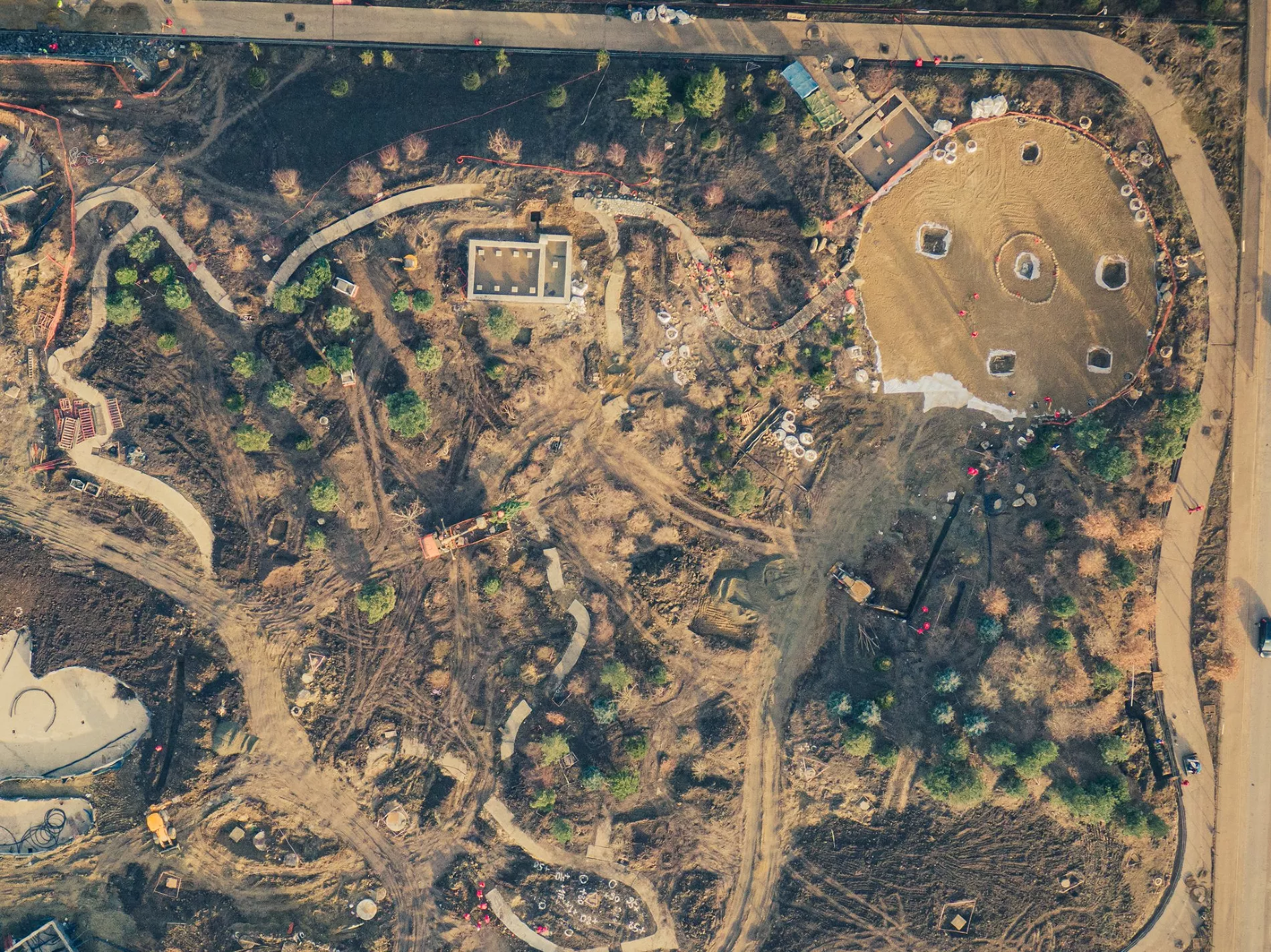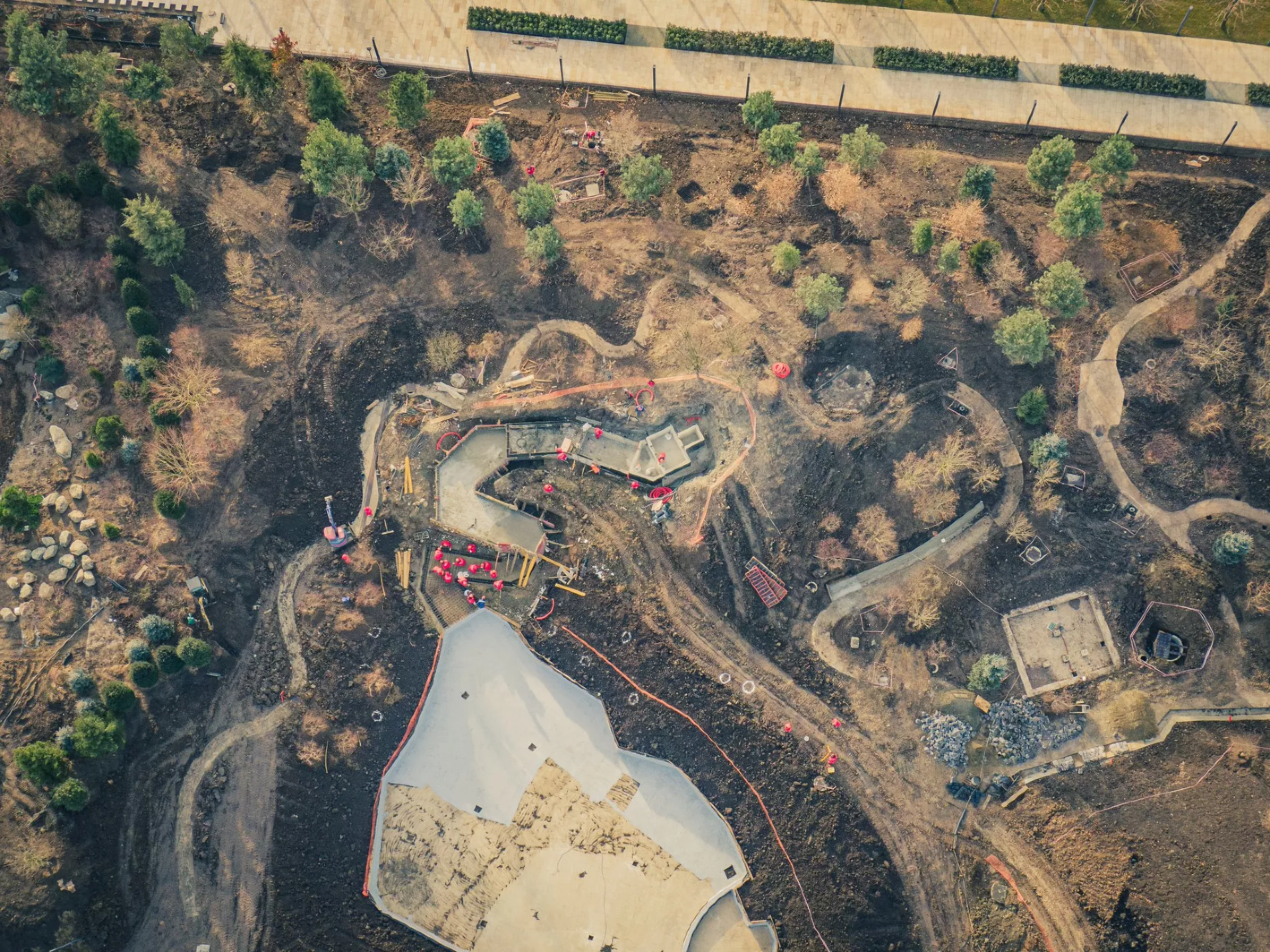 Фотограф Евгений Таранжин опубликовал в своем твиттере фото стройки новой очереди парка. Работы он снял с высоты птичьего полета.