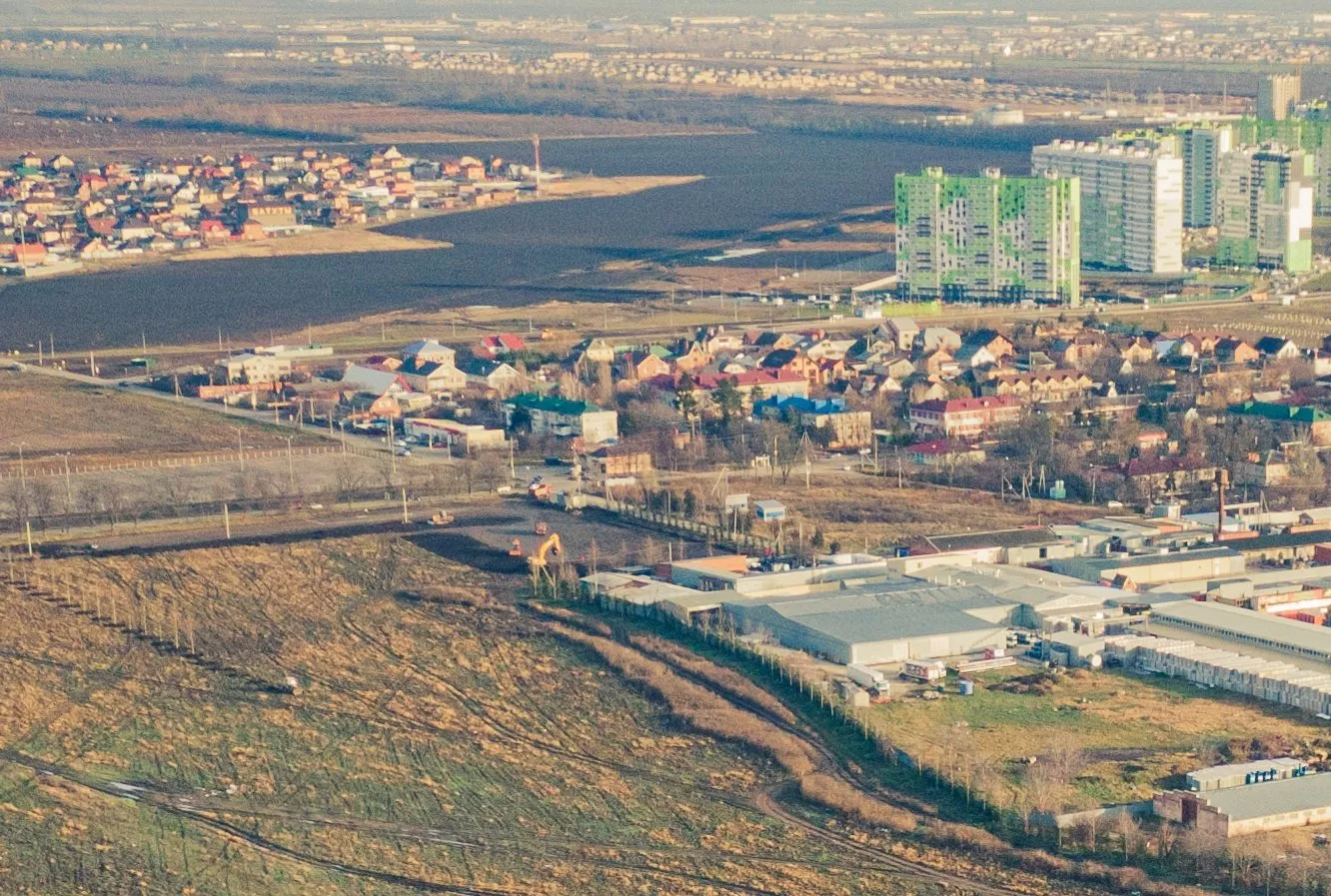 Фотограф Евгений Таранжин опубликовал фото строительства новой очереди парка «Краснодар» с высоты птичьего полета