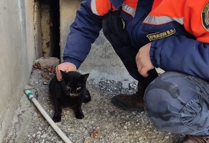 Новороссийские спасатели помогли коту, который несколько дней не мог выбраться из-под крыльца жилого дома