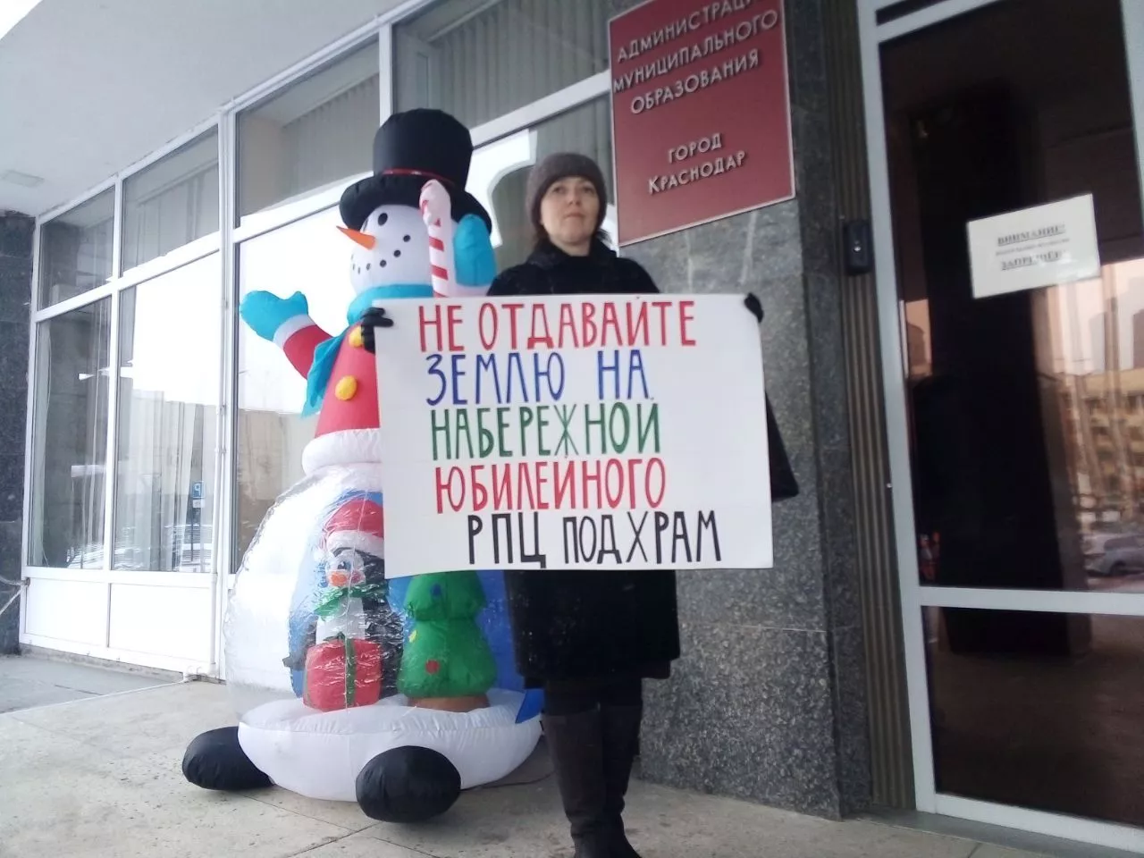 Активистка вышла к мэрии Краснодара с пикетом против храма в Юбилейном. Проект пообещали доработать