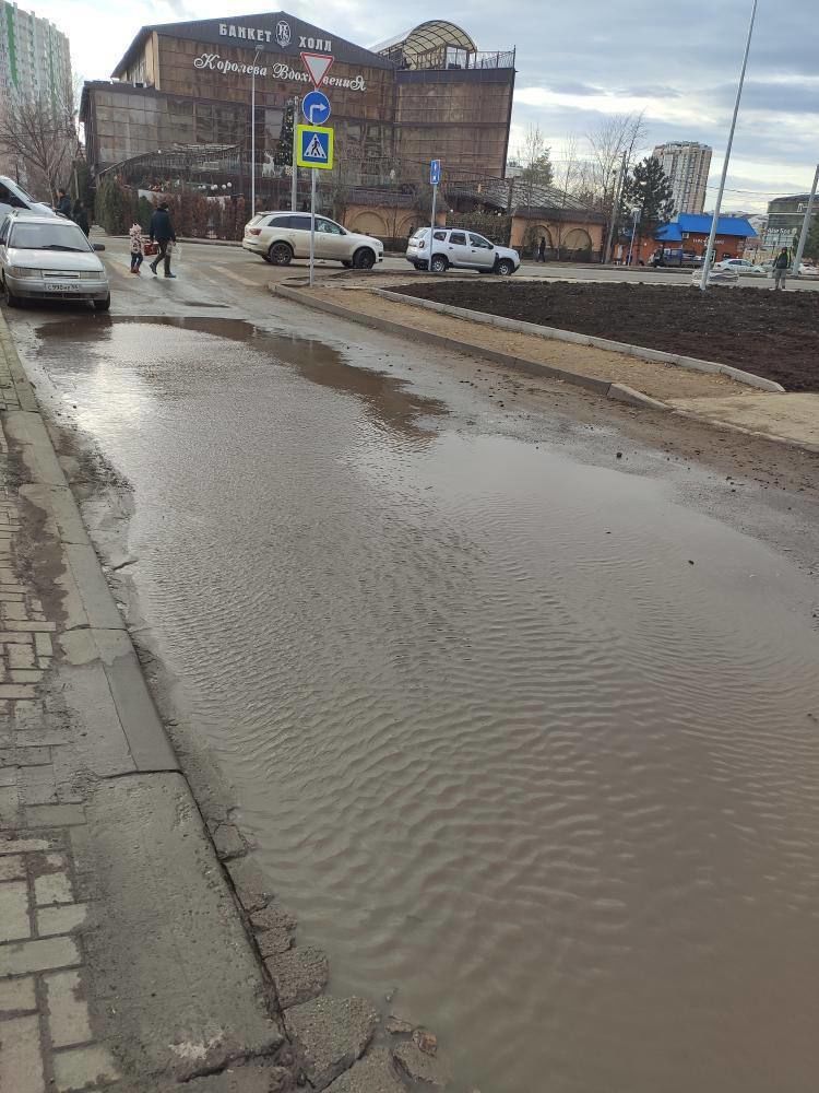 Утром 28 декабря там побывала журналистка Юга.ру и посмотрела, ушла ли вода. Спойлер — лужа никуда не делась.