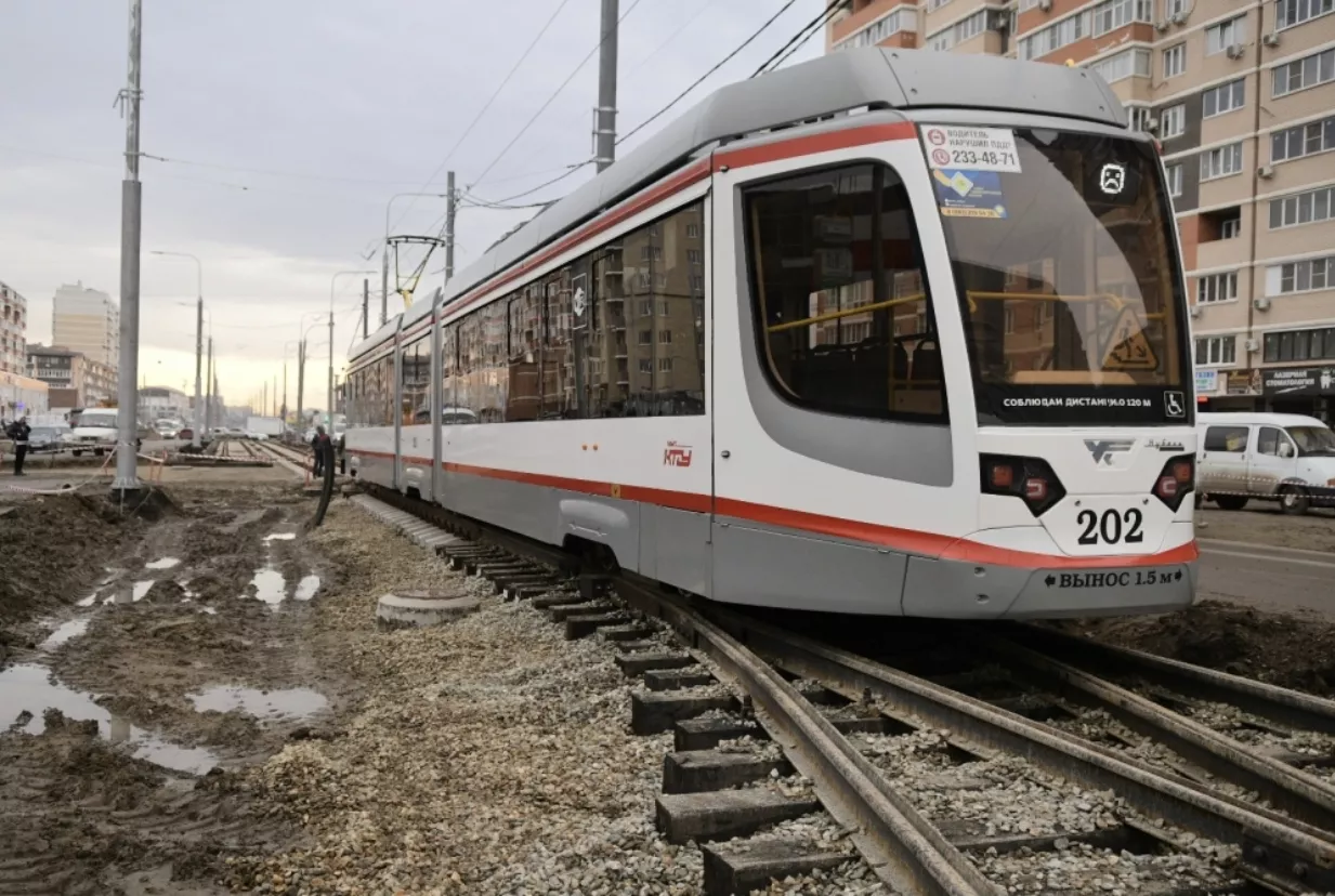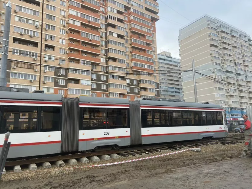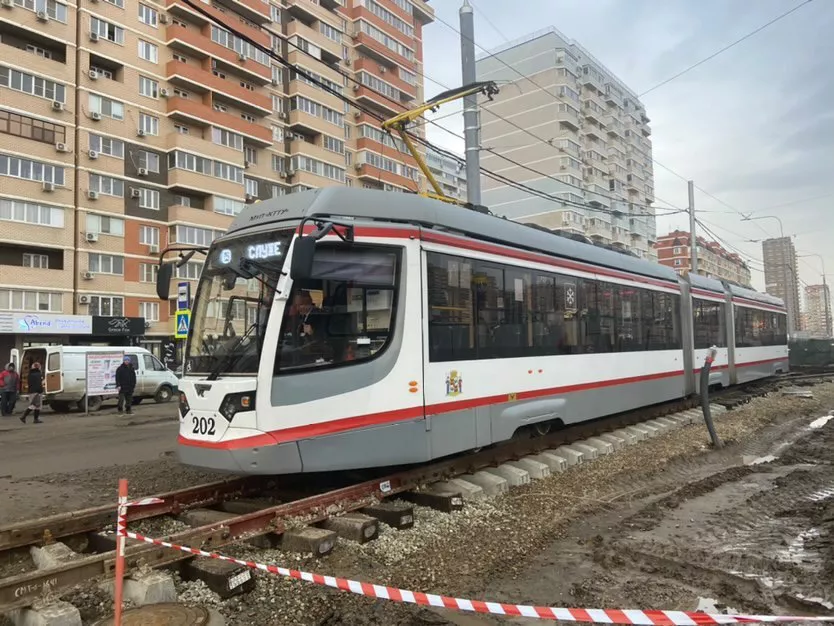 В Краснодаре по новой трамвайной ветке проехал первый пассажирский вагон