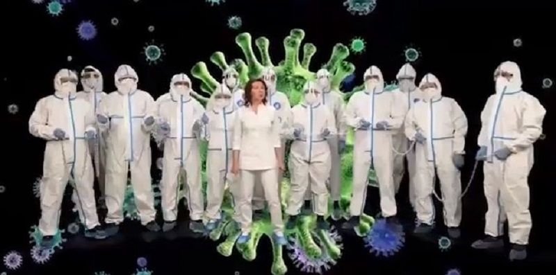 Главная тема ролика — коронавирус, точнее призыв людей сделать прививку от коронавируса. «Невидимый враг атакует повсюду. Он, скорее, похож на простую простуду. Он коварен, невидим, таится кругом и заходит без стука почти в каждый дом, чтобы в нашу жизнь нести перелом», — поют медики.