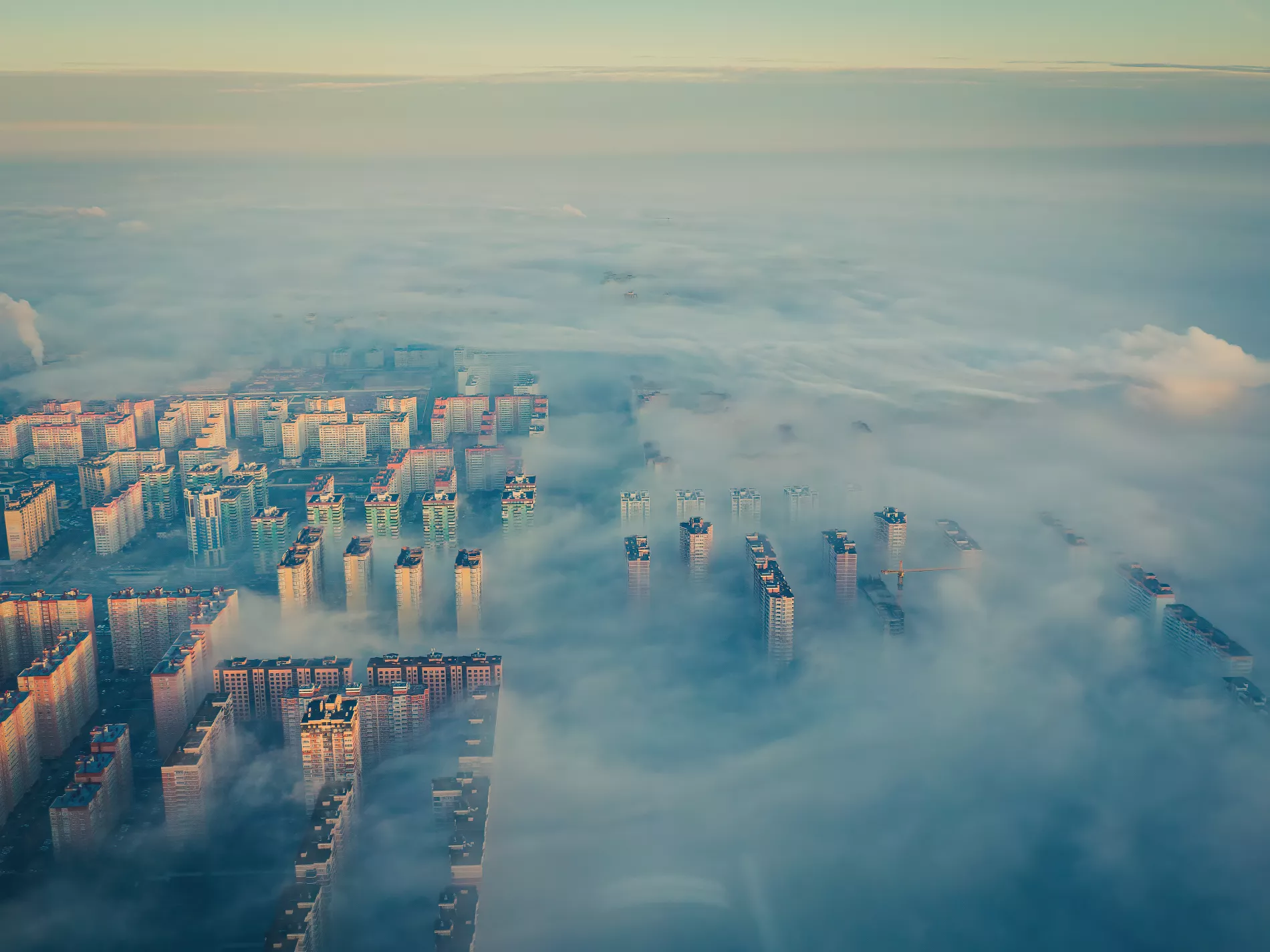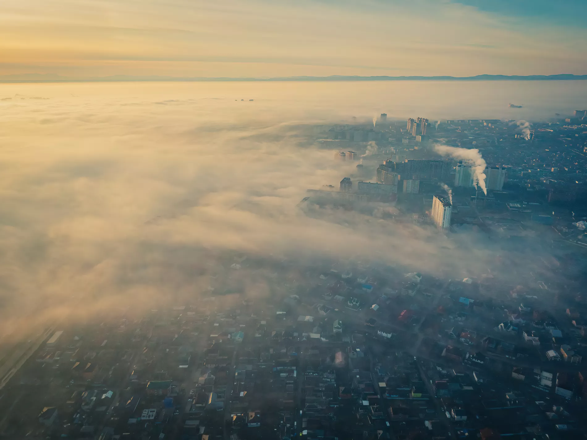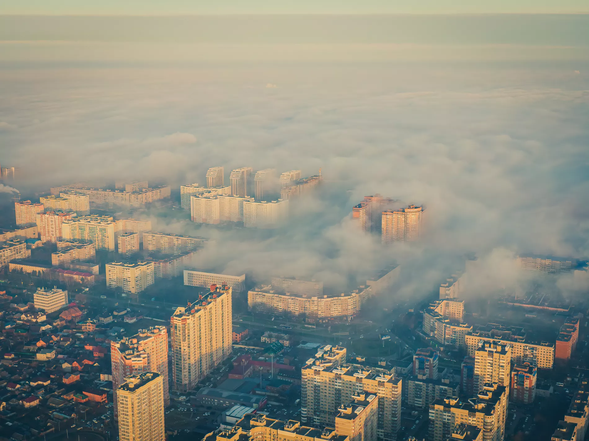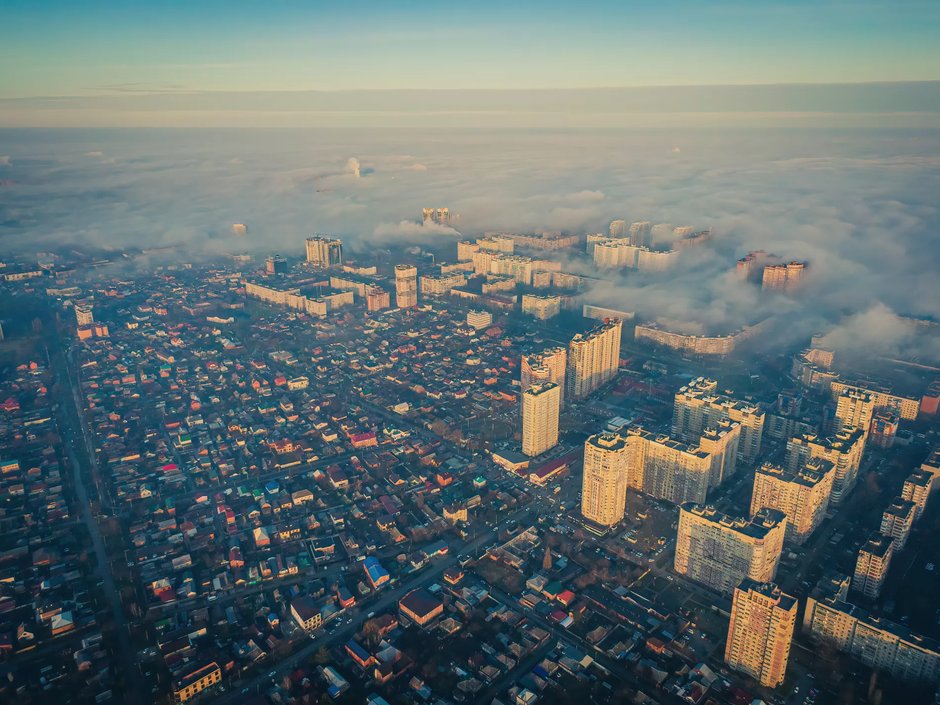 Туман над Краснодаром, вид сверху. Фото