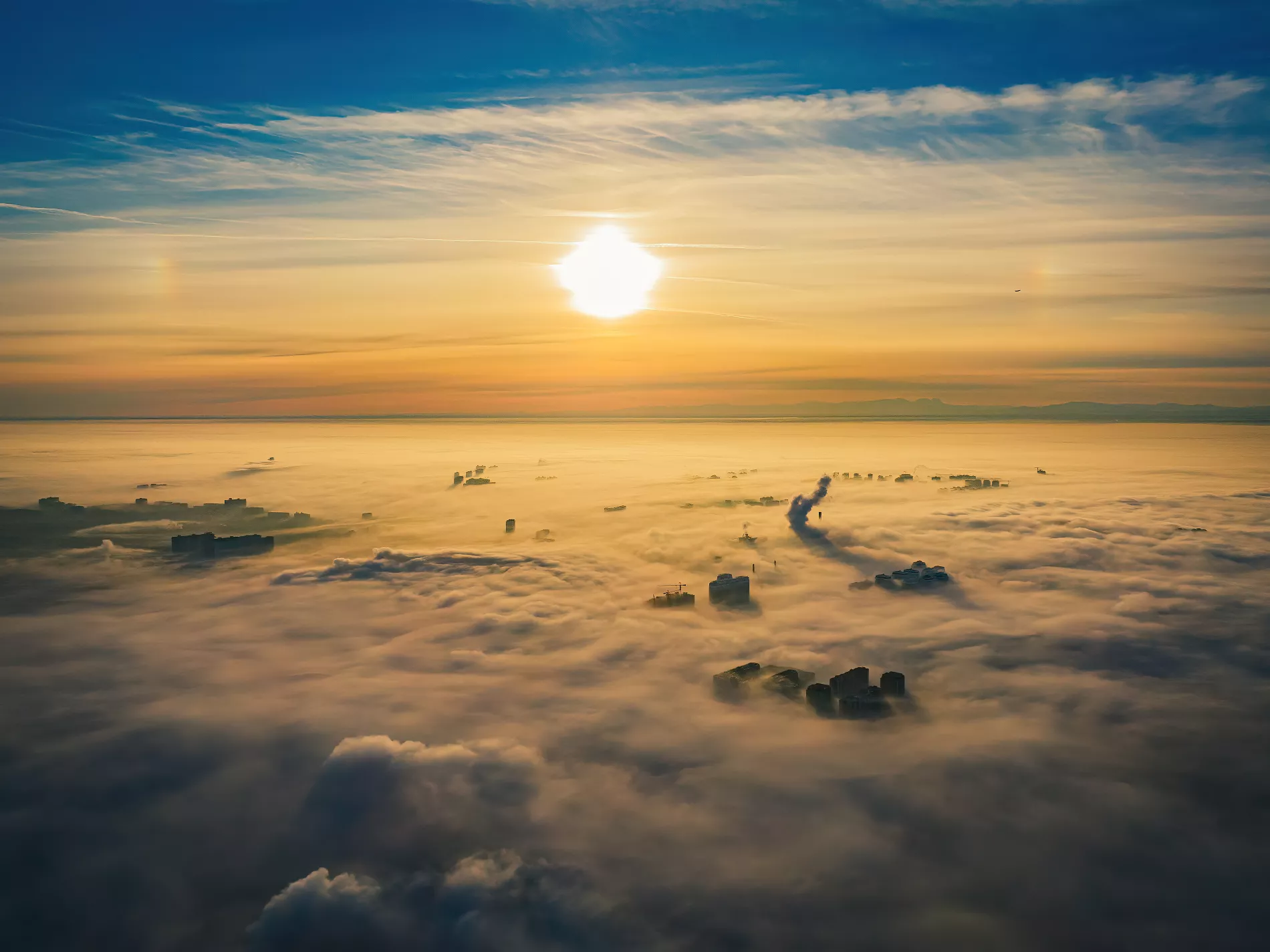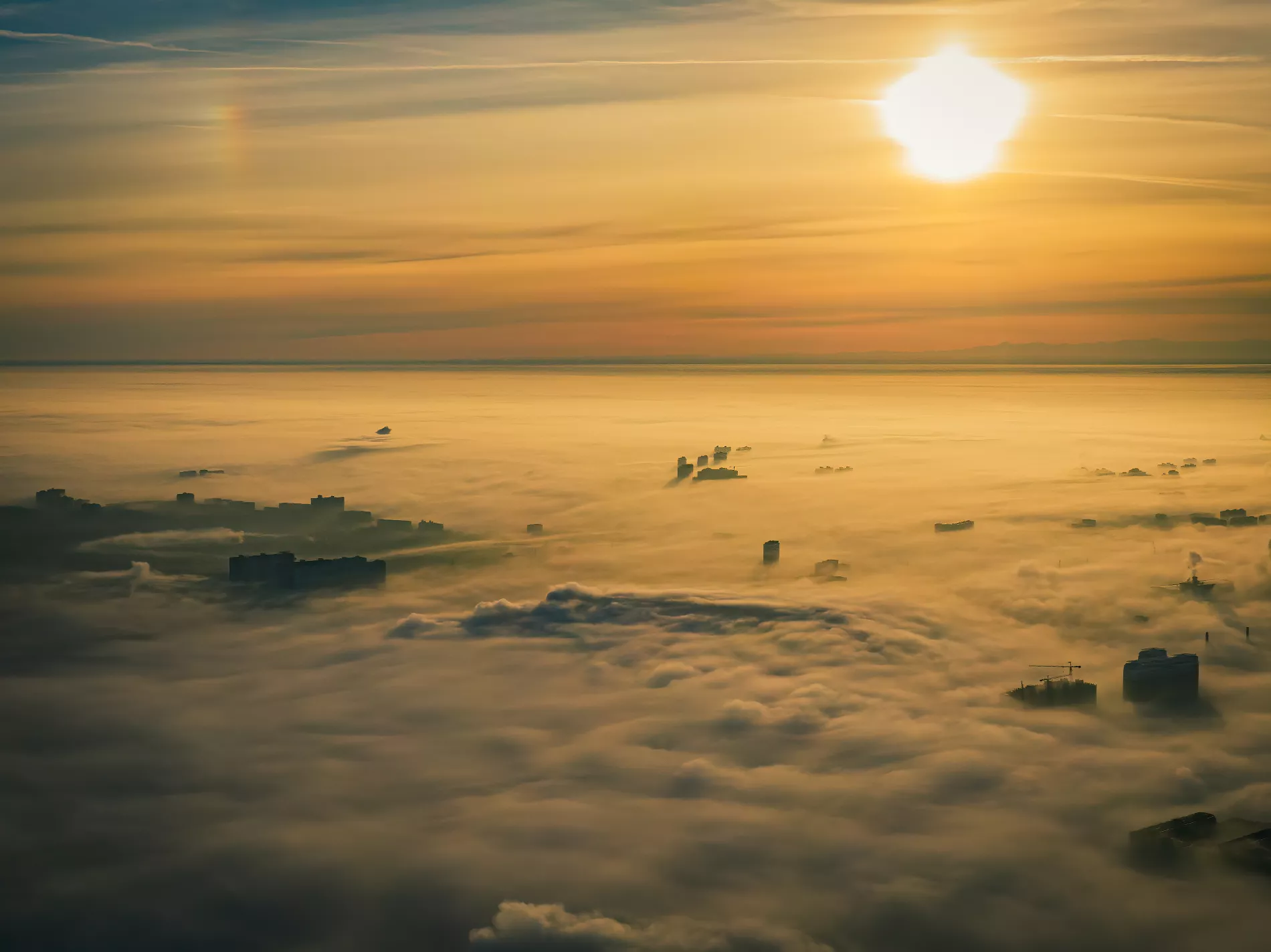 С высоты птичьего полета граница тумана смотрится весьма живописно.