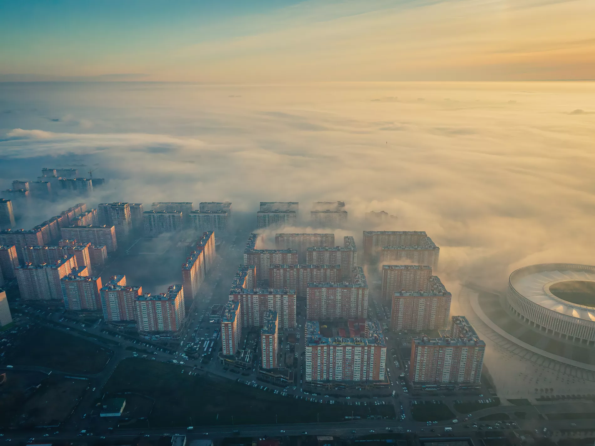 Предлагаем полюбоваться, как выглядит туман над Краснодаром с высоты птичьего полета