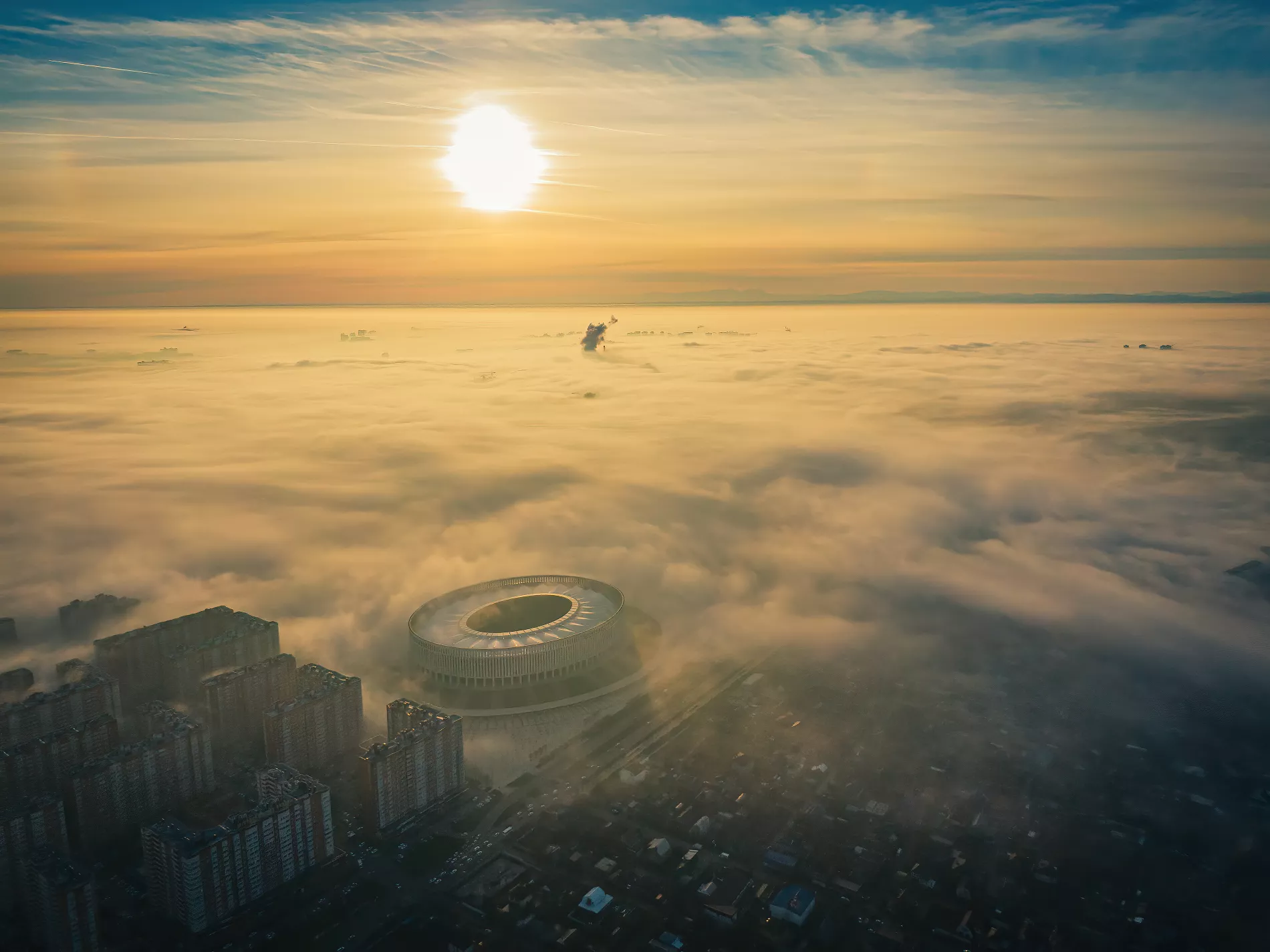 Краснодарец Евгений Таранжин 30 декабря провел аэрофотосъемку, благодаря которой у нас есть редкая возможность взглянуть на туман сверху.
