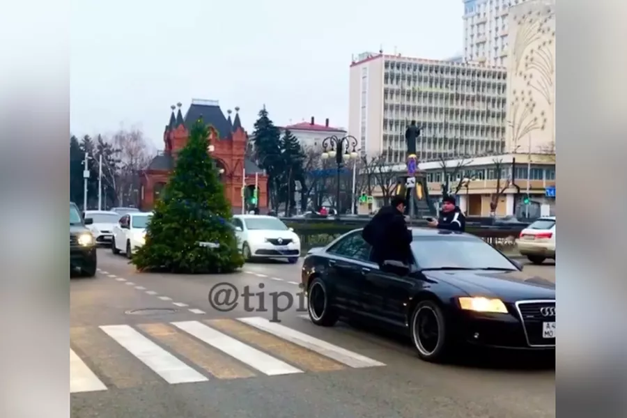 Около 16:00 31 декабря на улицы Краснодара выехала самоходная новогодняя елка, через час ее задержали сотрудники ДПС