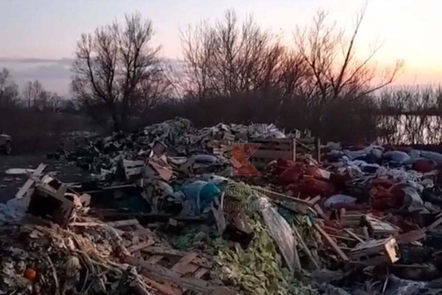 Среди мусора можно различить строительные отходы, гнилые овощи и фрукты, поломанные деревянные паллеты. По словам автора видео, свалка эта незаконная. Судя по тому, что в кадре видна река Кубань, факт размещения в этом месте отходов нарушает целый ряд статей Водного кодекса РФ (в частности, 56-ю).