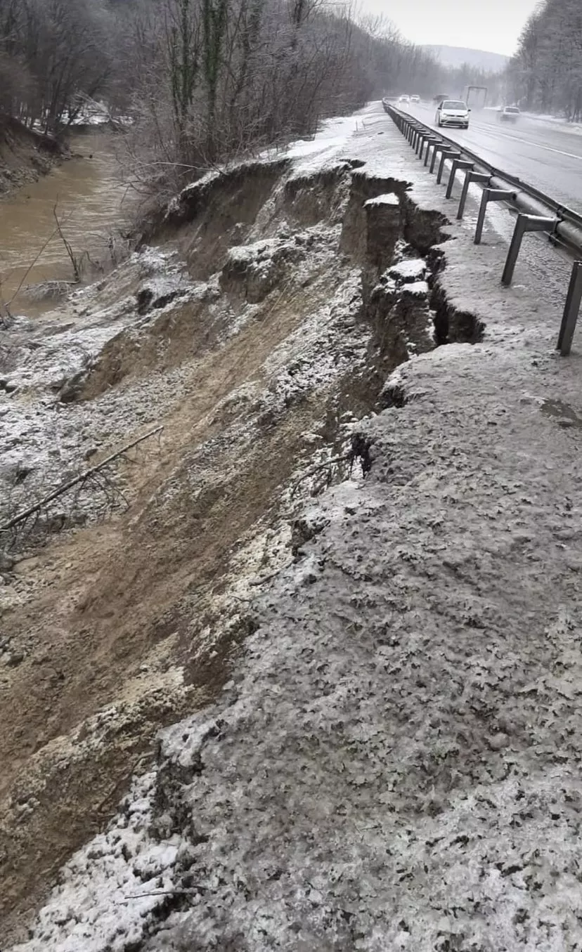 На 1393-м км трассы М4 «Дон» на выезде из станицы Пятигорской из-за оползня обвалился участок трассы