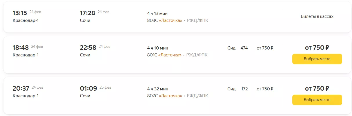Билеты на «Ласточку» из Краснодара в Сочи еще есть.