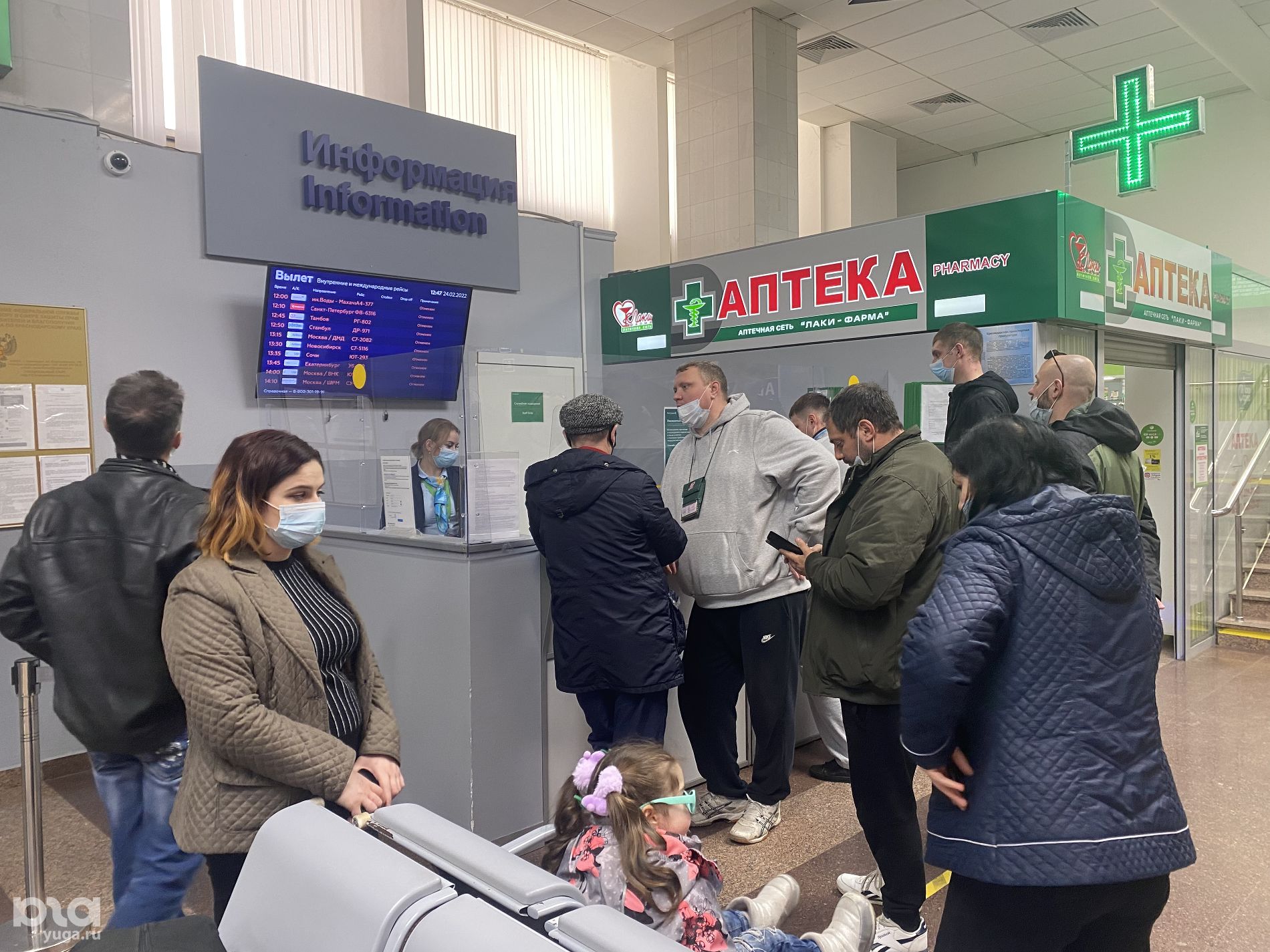 Люди пытаются купить или обменять билеты. Пассажирам предлагают ждать 27 февраля или поехать автобусом в Минеральные Воды и лететь оттуда.