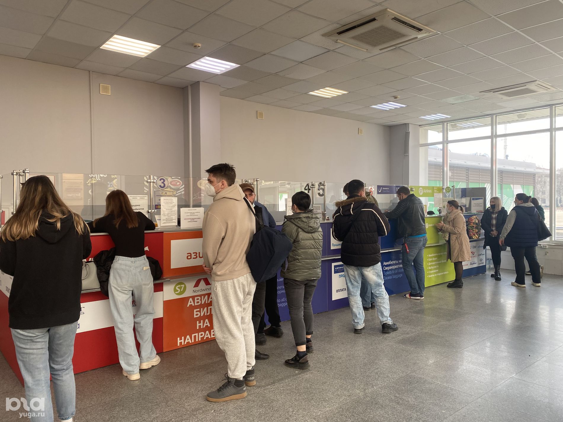 Редактор Юга.ру Валерия Кирсанова находится в аэропорту Краснодара. Она рассказала, что при входе в терминал тщательно досматривают и просят расстегнуть верхнюю одежду. Зона прилета и выдачи багажа пустая, в зоне ожидания есть люди, но их немного.