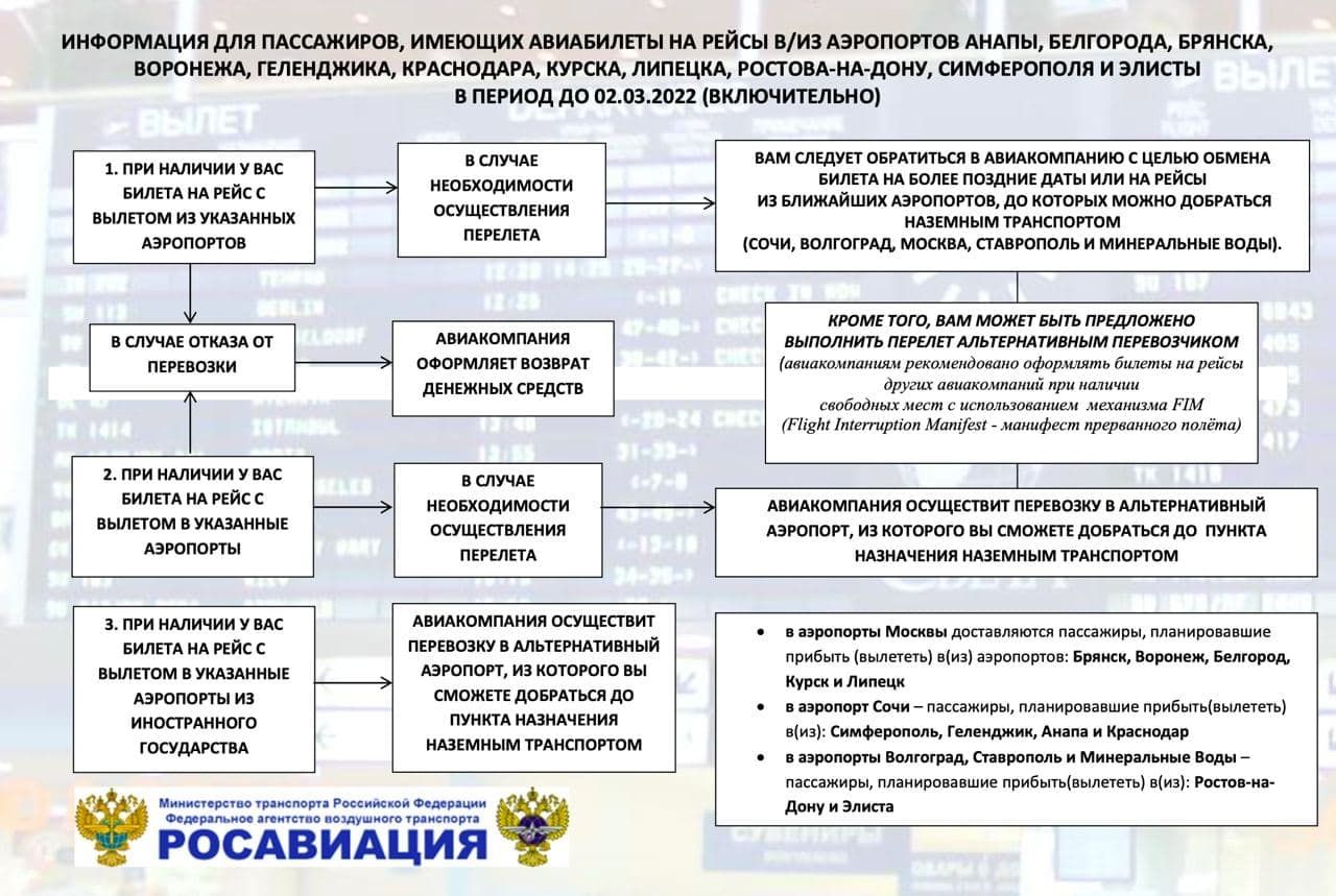 В пресс-службе Росавиации подчеркнули, что авиакомпании должны полностью вернуть деньги за билеты на отмененные самолеты либо предложить пассажирам перебронировать полеты на другие даты и маршруты.