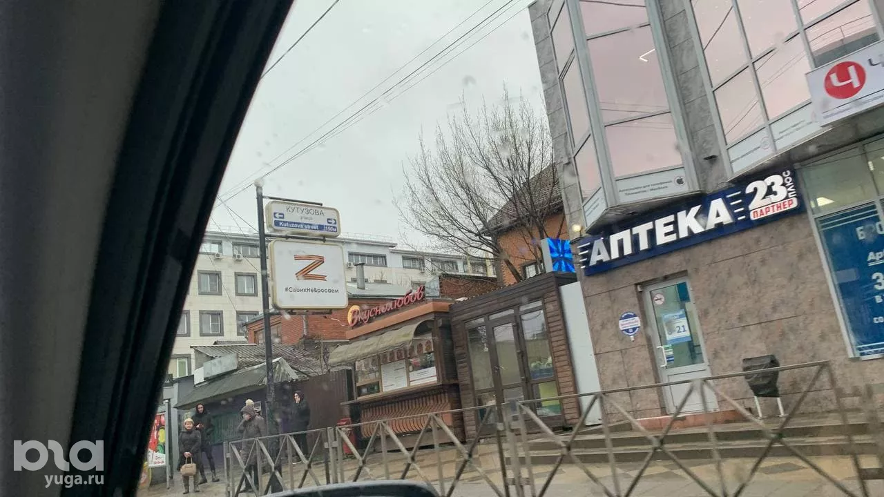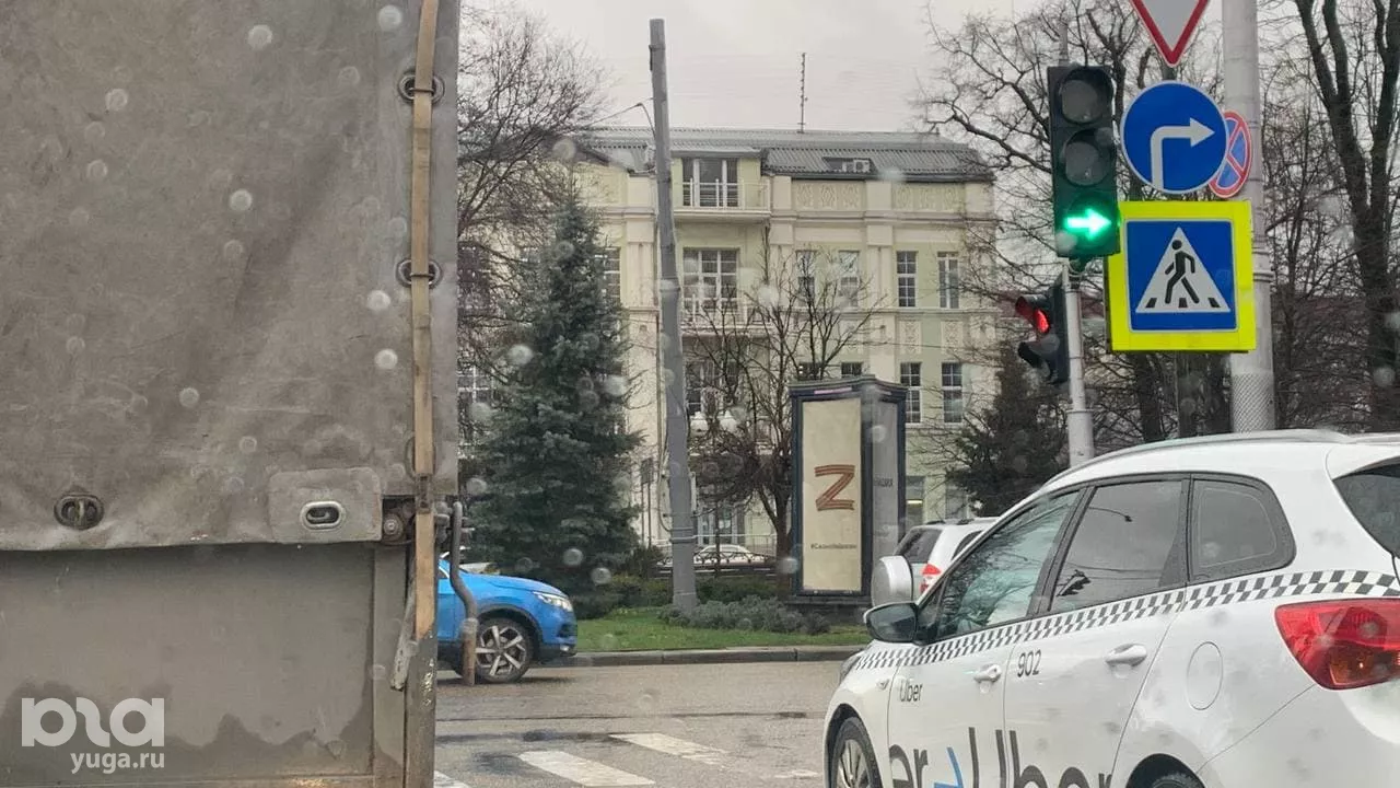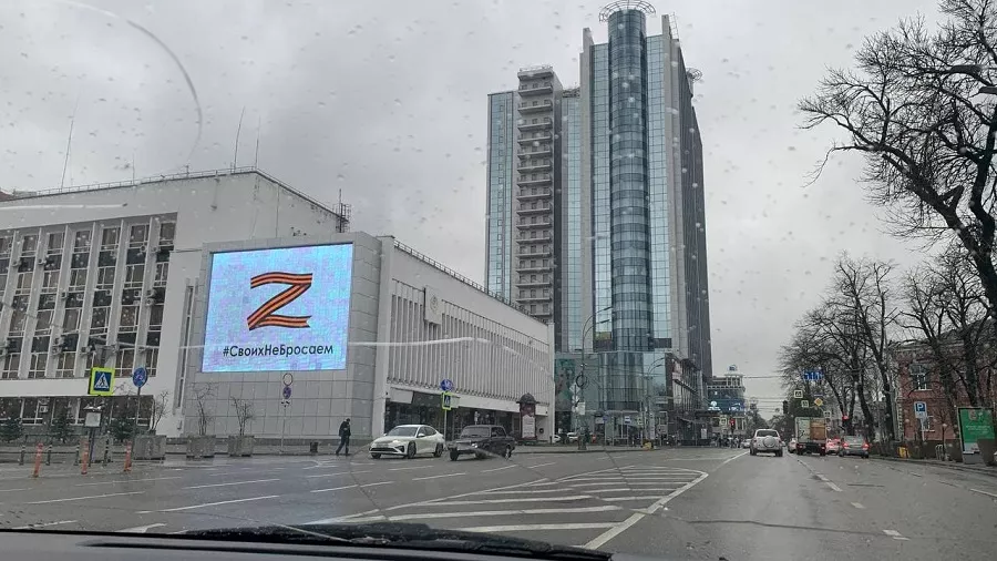 2 марта в Краснодаре буква Z появилась на рекламных поверхностях, в том числе — на здании мэрии
