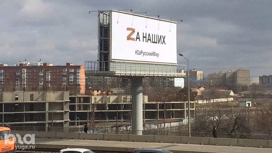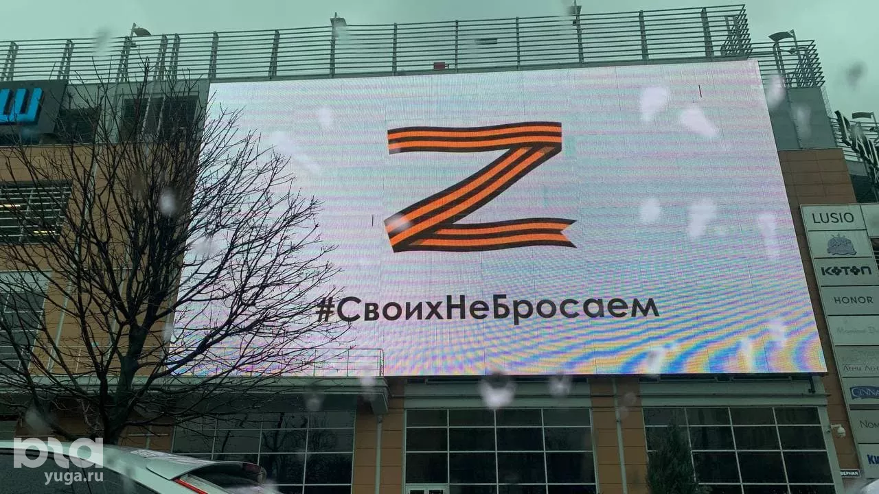 Весной в Краснодаре на крупных улицах и перекрестках появились билборды и рекламные баннеры с буквой Z цветов Георгиевской ленты.